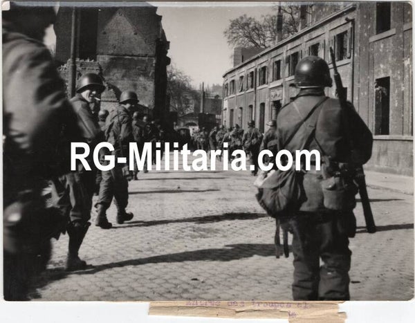 Original WW2 French Press Photo - US soldiers in Mainz, Germany (1945)