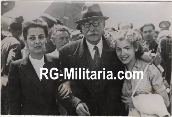 Original WW2 French Press Photo - Jewish Mr. and Mrs. Léon Blum arrive back in France from the concentration camps Buchenwald and Niederdorf (1945)