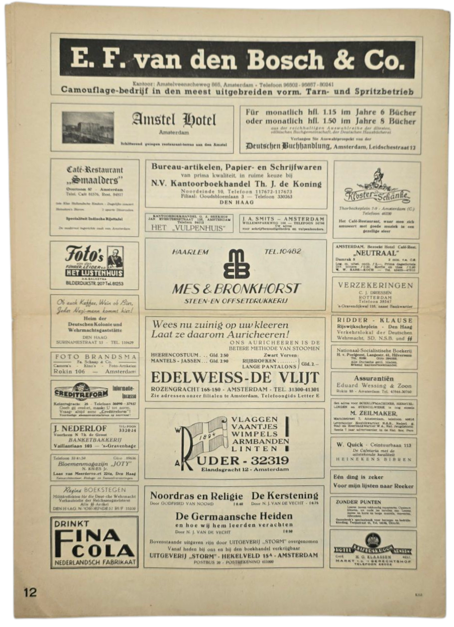 Storm SS was the newspaper for the Dutch Waffen SS sympathizers. The newspaper began in 1941 and ended in May 1945. The newspaper often shows (Dutch) Kriegsberichter photos, political articles, and caricatures.