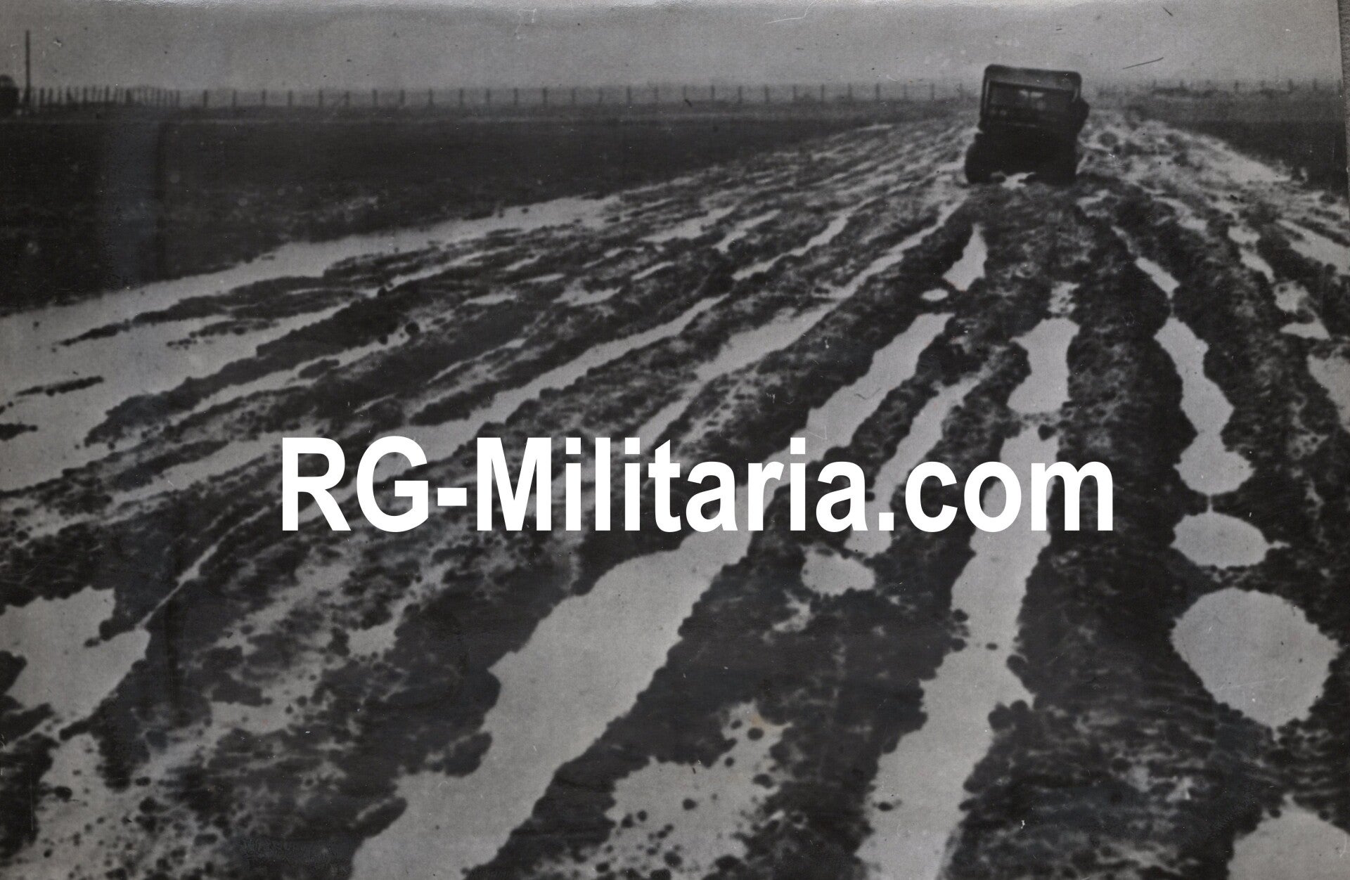 Originele Wo2 Franse Persfoto - Geallieerde voertuig in de modder, Duitsland (1945)