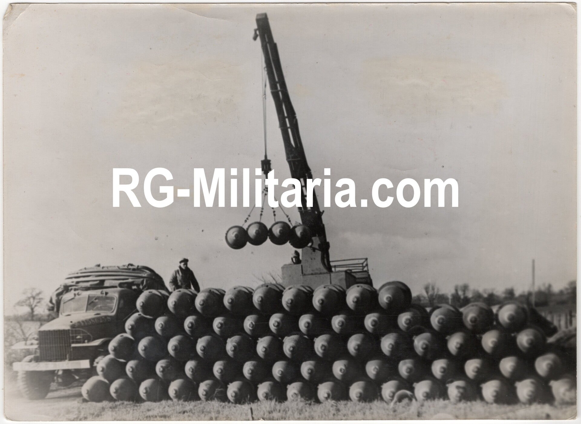 Original WW2 French Press Photo - Large British bombs on an US airfield in Britain
