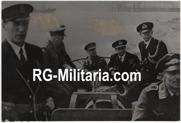 Originele Wo2 Franse Persfoto - Britse militairen varen bij de haven van Kiel (1945)