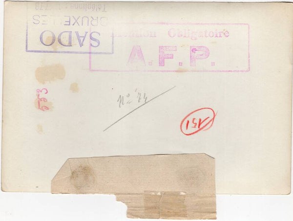 Original WW2 French Press Photo - US troops on Sherman tanks riding in the field