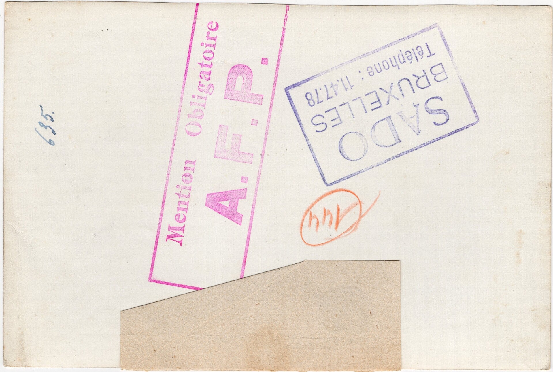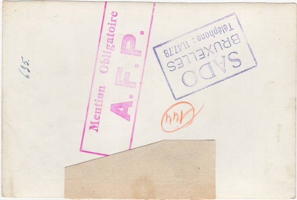 Original WW2 French Press Photo - US troops on Sherman tanks drive through a destroyed city