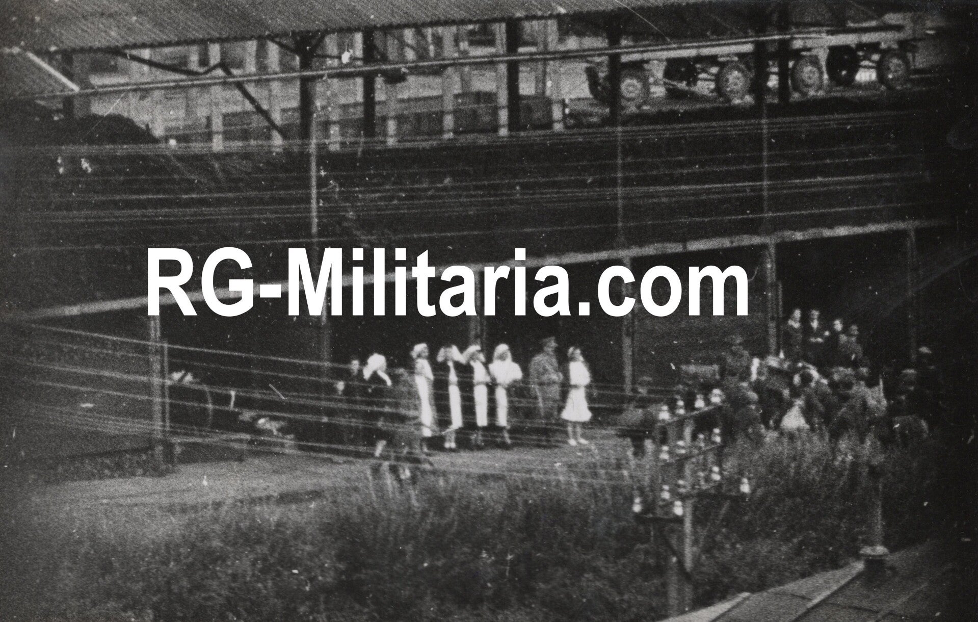 Zeer interessante geheime fotoserie gemaakt door een medewerker van het Belgische Rode Kruis van de deportatie van Belgische werkweigeraars die gevangen zaten in een gevangenis in Brussel. Ze werden vlak voor de bevrijding van Brussel vanuit het station van Etterbeek naar Duitsland gedeporteerd.