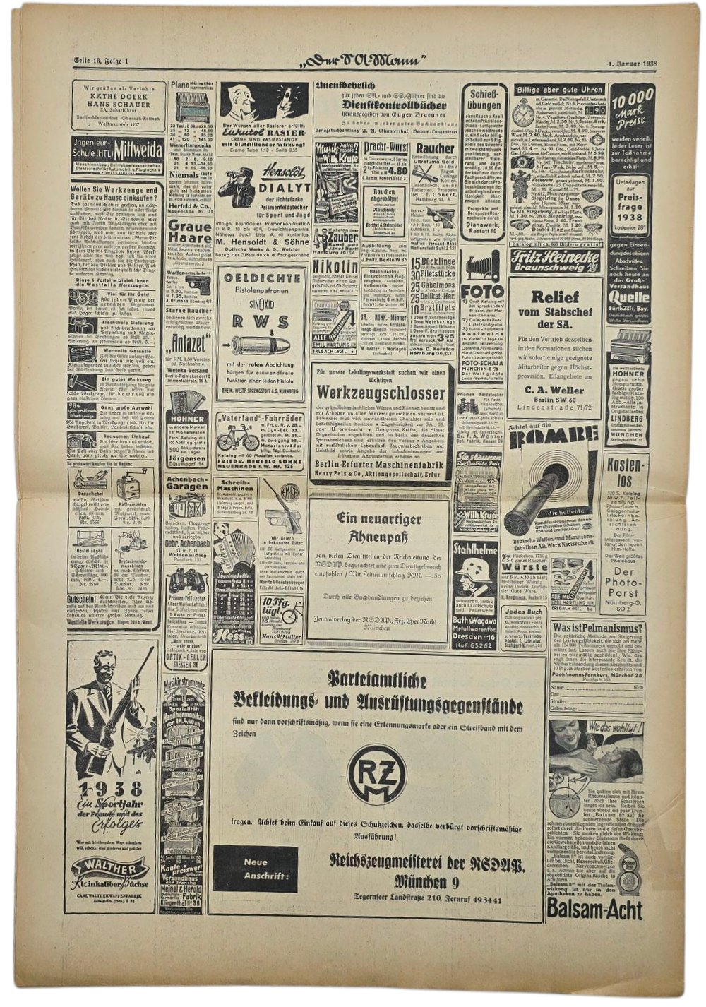 Original WW2 German SA Newspaper - Der SA-Mann 7th year no 1 Augabe Niederrhein (1938)