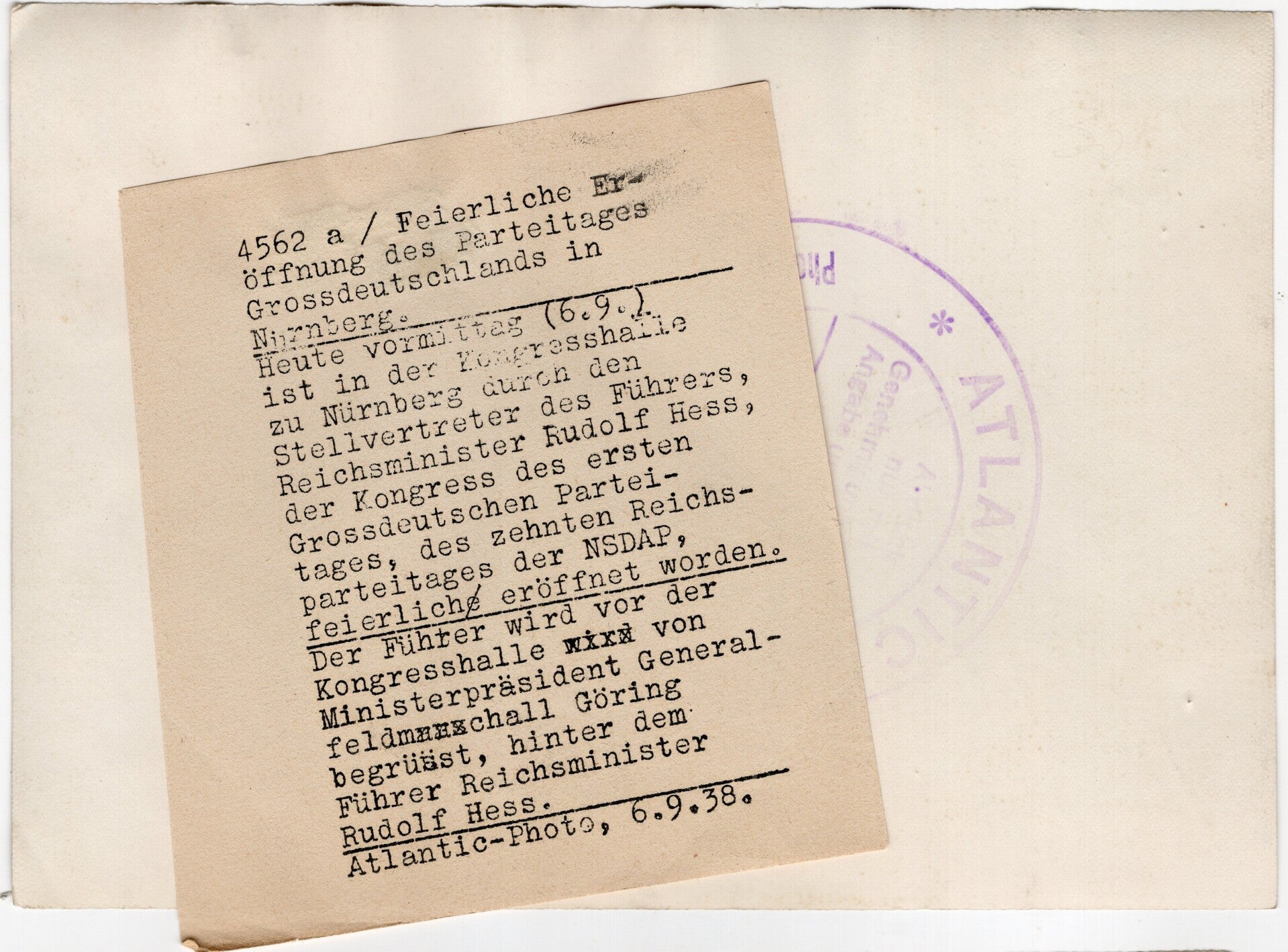 Original WW2 German Press Photo - Opening Reichsparteitag Nurnberg with Adolf Hitler, Hermann Göring and Rudolf Hess (1938)