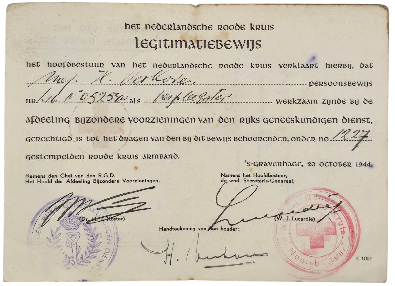 Original WW2 Dutch Document - Dutch Red Cross ID card with Canadian signatures of liberators, Leiden (1945)