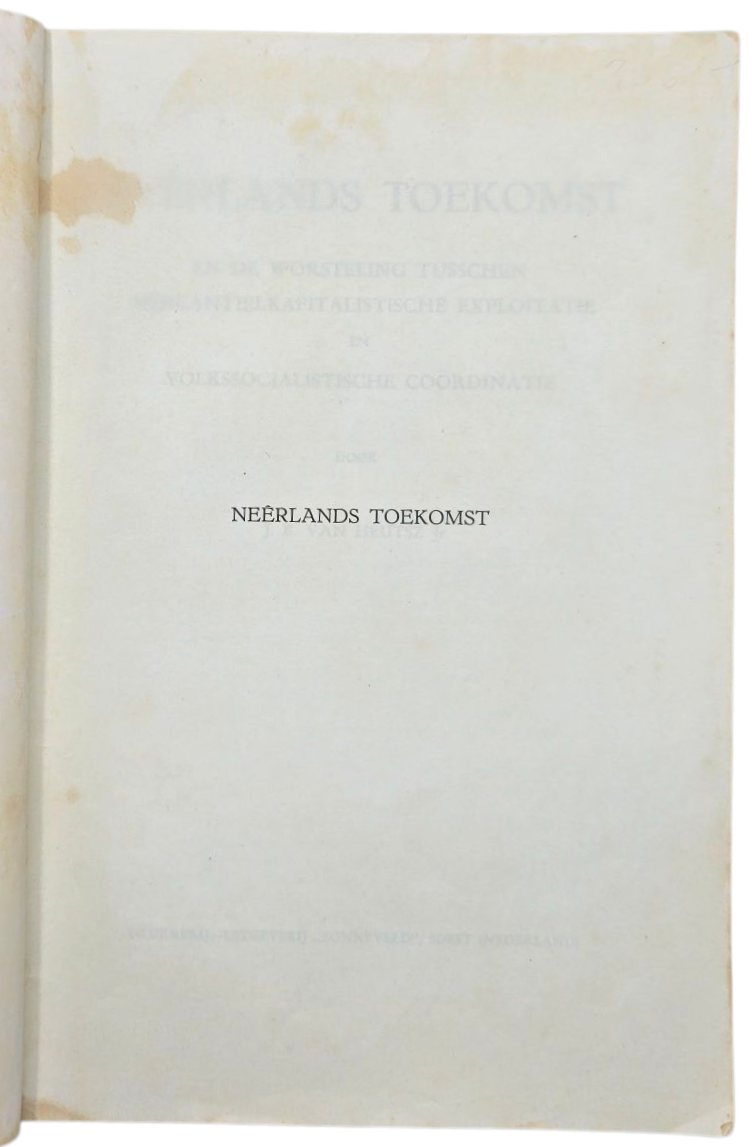 Original WW2 Dutch Collaboration NSB Brochure - Opbouwreeks der Hollandsche Post No. 1, Neerlands Toekomst, J. B. van Heutsz Jr. (1944)