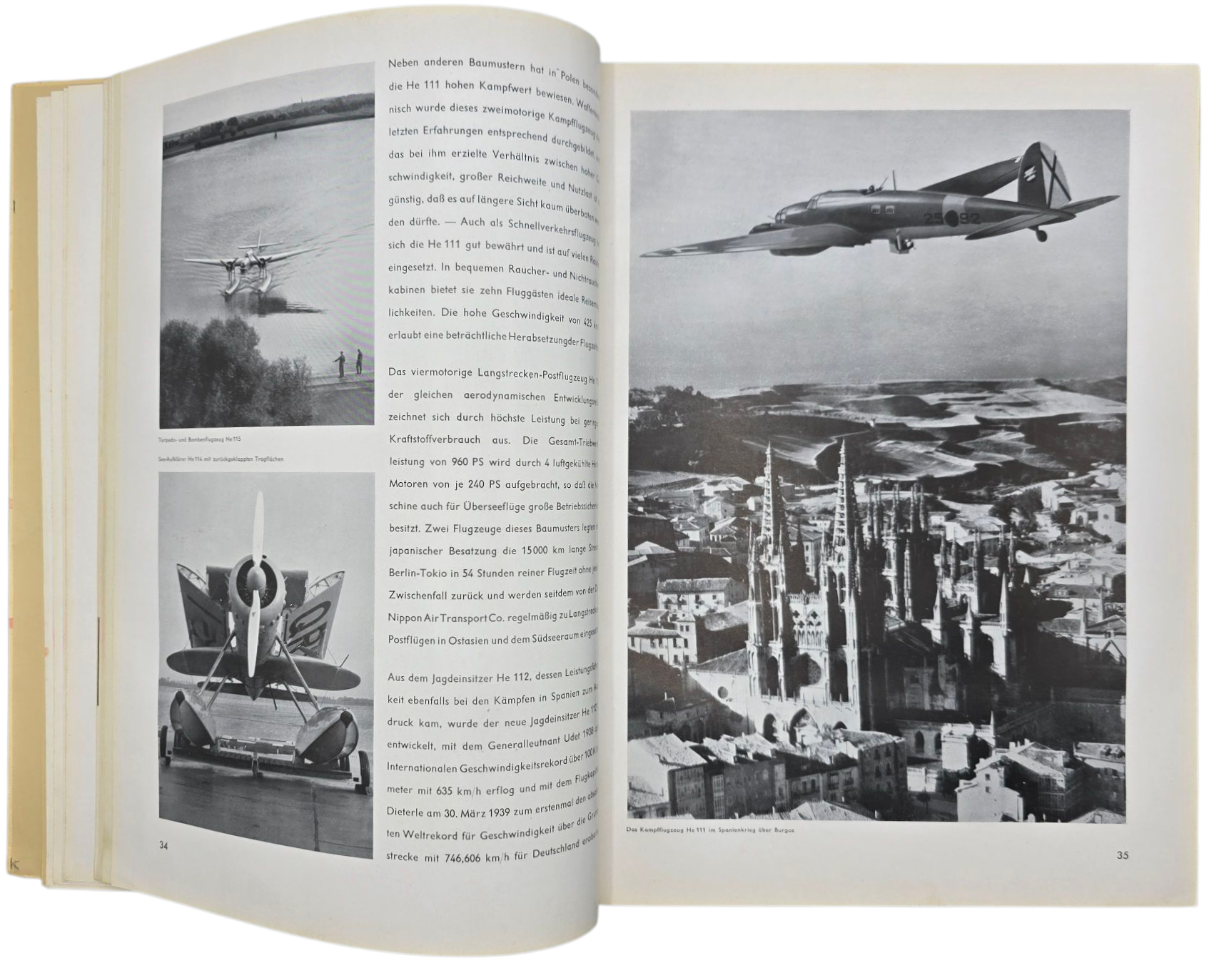 Interessant boek voor de vliegtuigverzamelaar. De titelpagina heeft wat vlekken. Het boek lijkt opnieuw gebonden. Veel verschillende vliegtuigen staan erin met afbeeldingen.