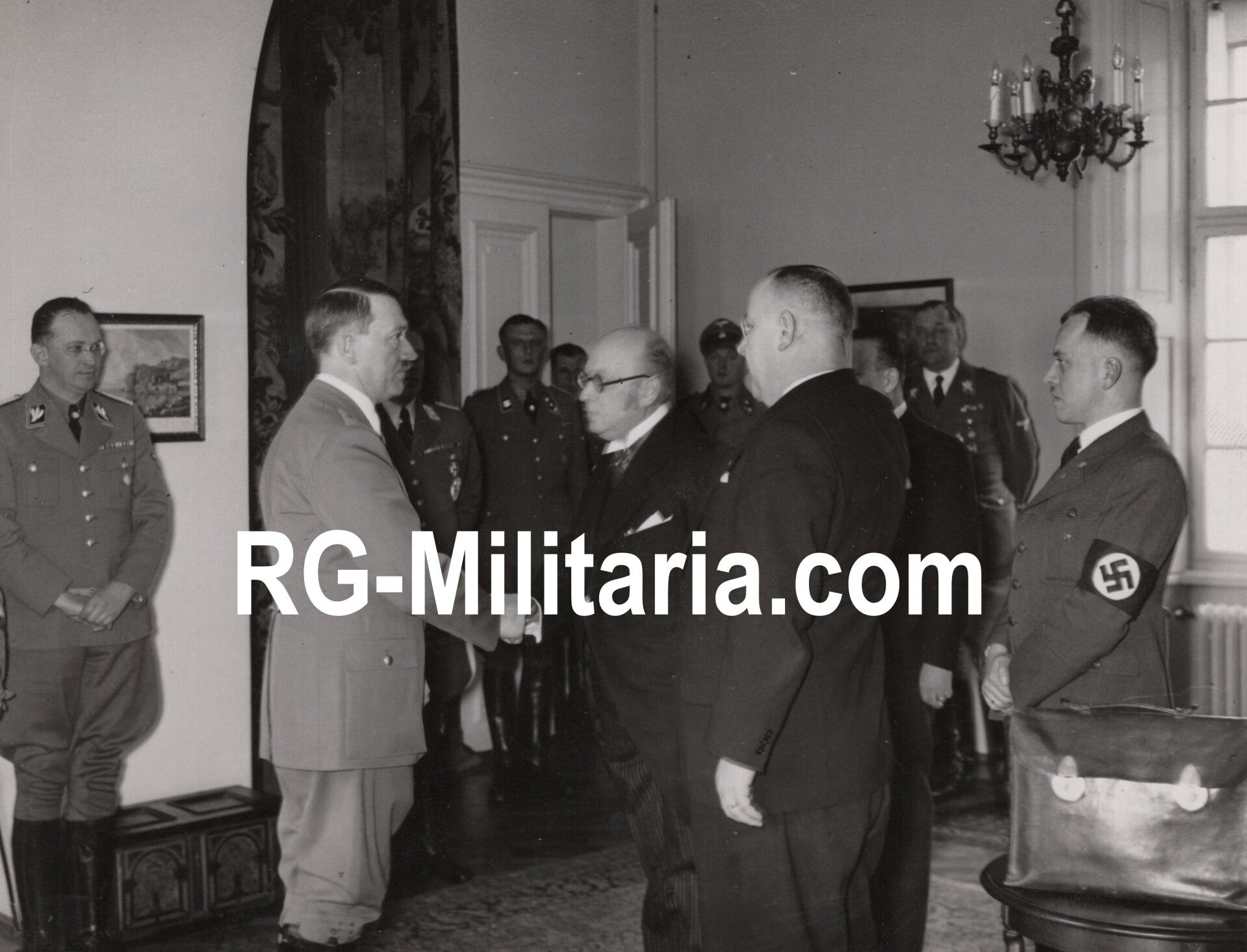 Original WW2 German Press Photo - Adolf Hitler at the Prager Burg with Oberbürgermeister Otakar Klapka, Konrad Henlein, and Josef Pfitzner, Prague