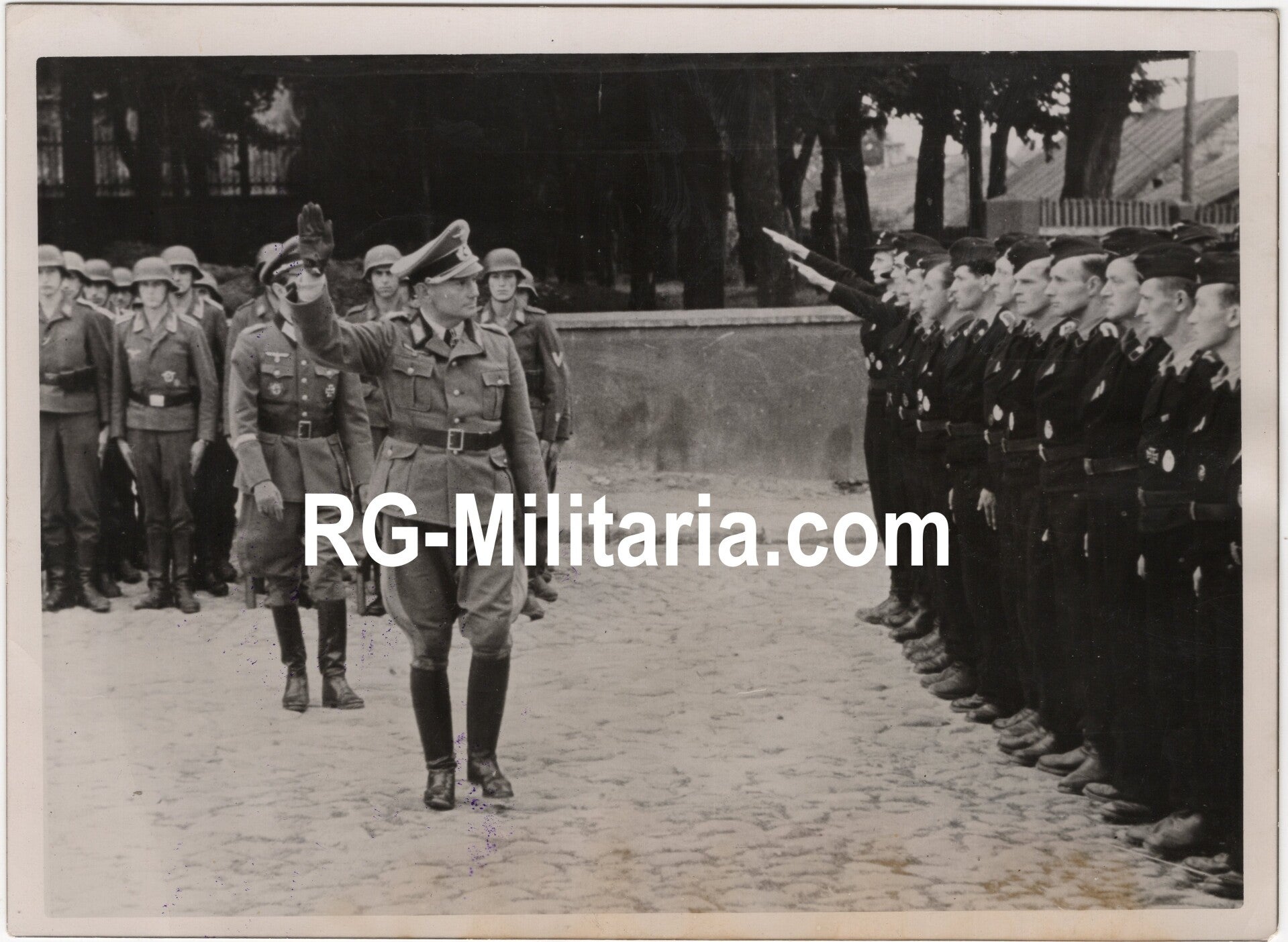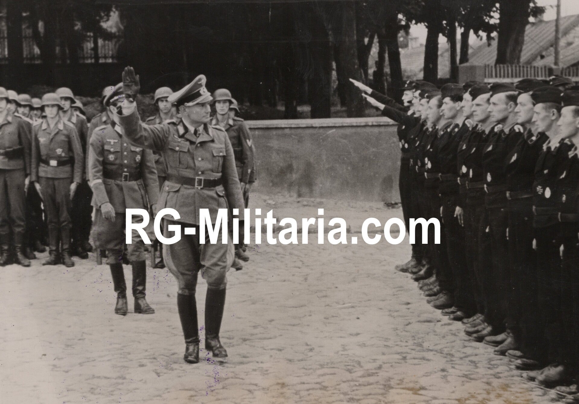 Original WW2 German Press Photo - Ritterkreuztrager Knights Cross Wearer General der Panzertruppen Herman Balk inspecting Panzer soldiers (1944)
