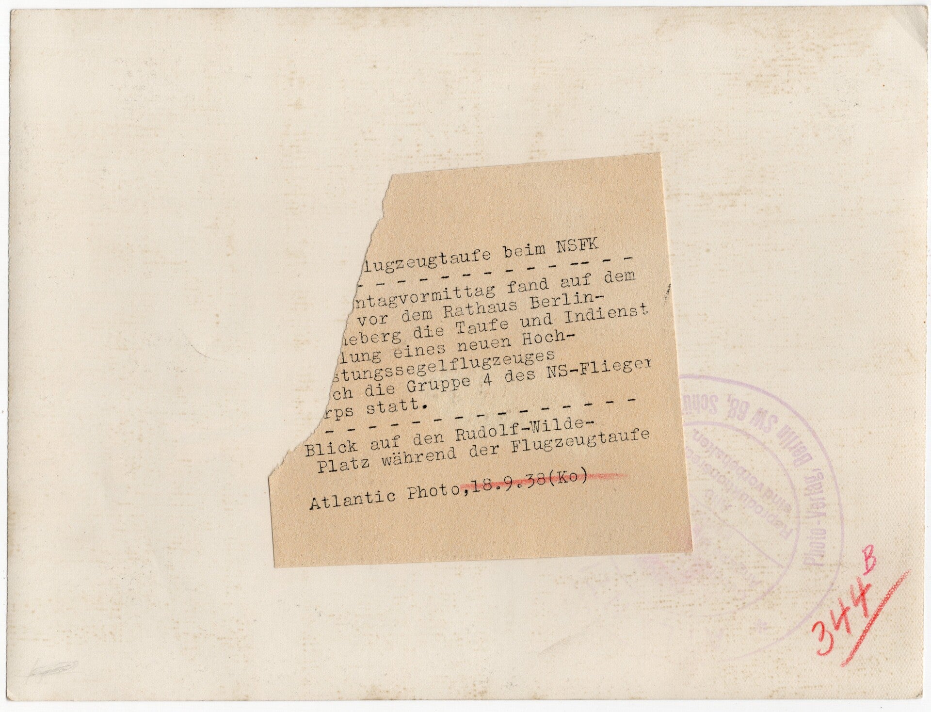 Originele Wo2 Duitse Persfoto - NSFK Gruppe 4 zweefvliegtuig tentoonstelling, Rudolf Wilde Platz, Berlijn (1938)