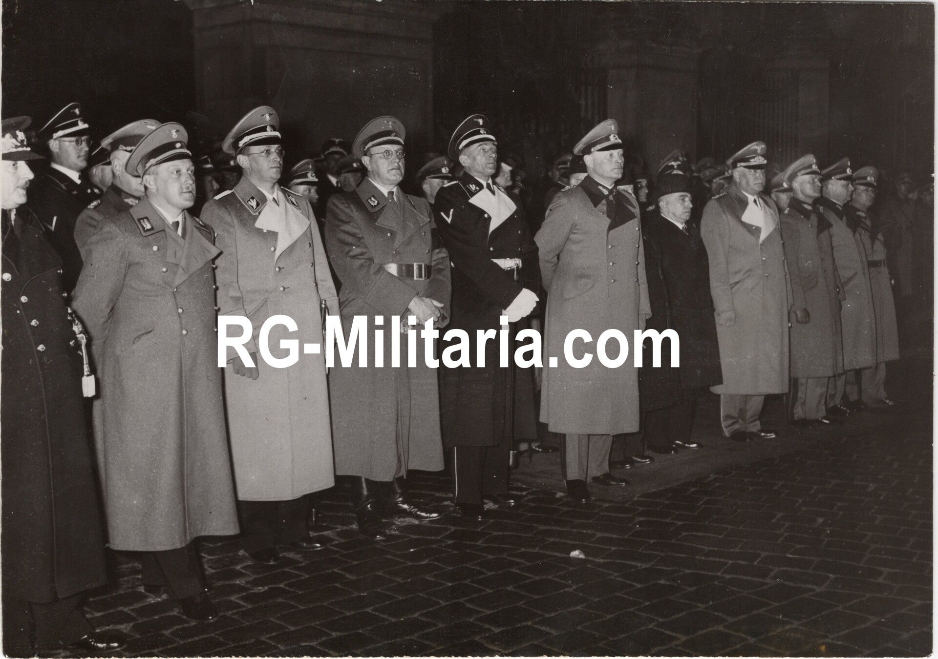 Original WW2 German Press Photo - Reichsprotektor Freiherr Konstantin von Neurath among officials during the Großer Zapfenstreich in Prague (1939)