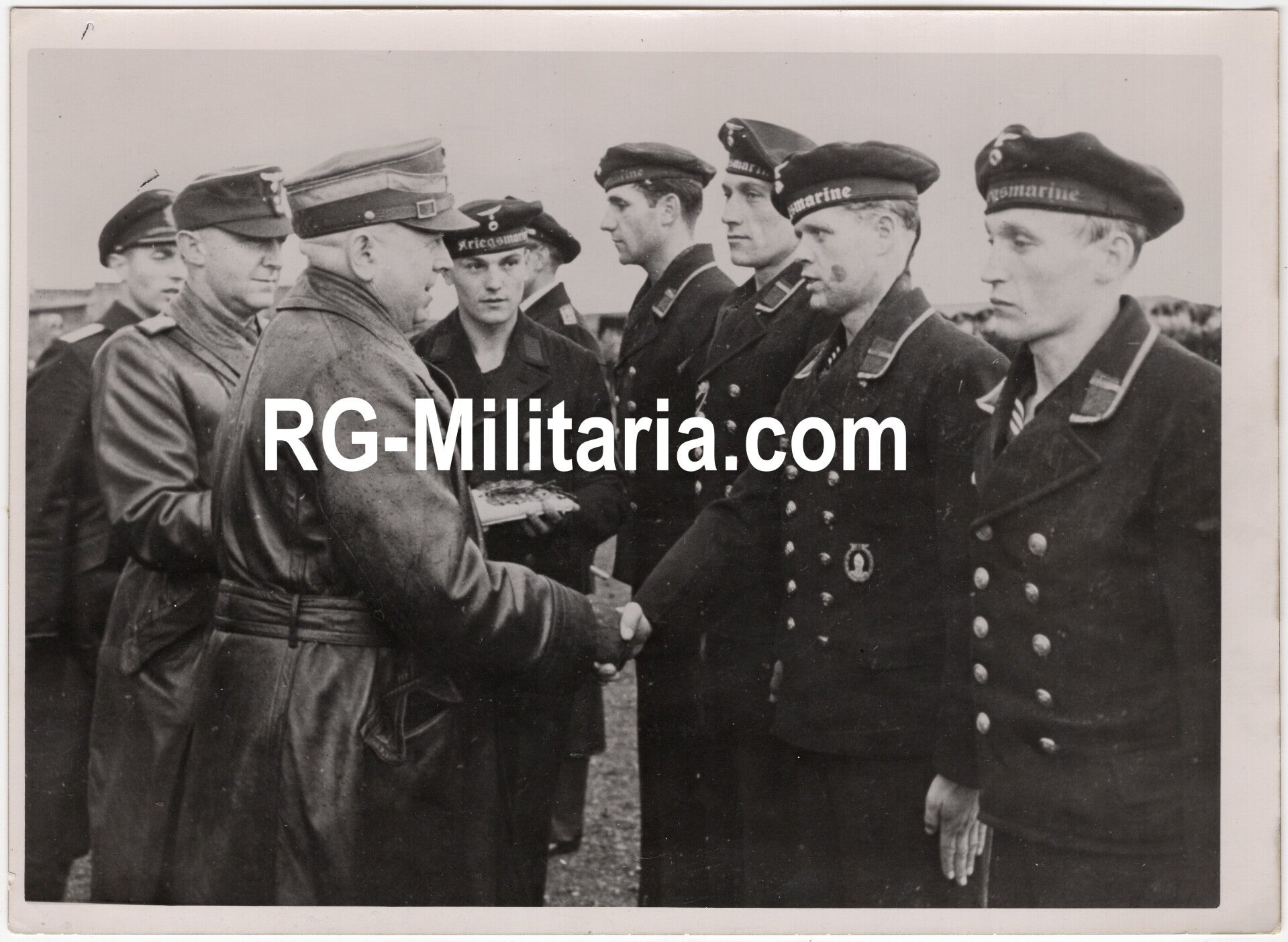 Original WW2 German Press Photo - SA Stabschef Wilhelm Schepmann awarding Kriegsmarine U-boot soldiers the SA Wehrabzeichen (1944)