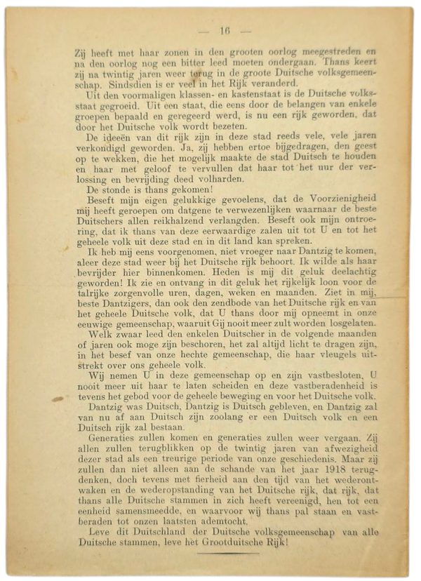 Original WW2 Dutch Collaboration Brochure - Rede gehouden door den Führer Adolf Hitler in den Artushof te Dantzig (1939)