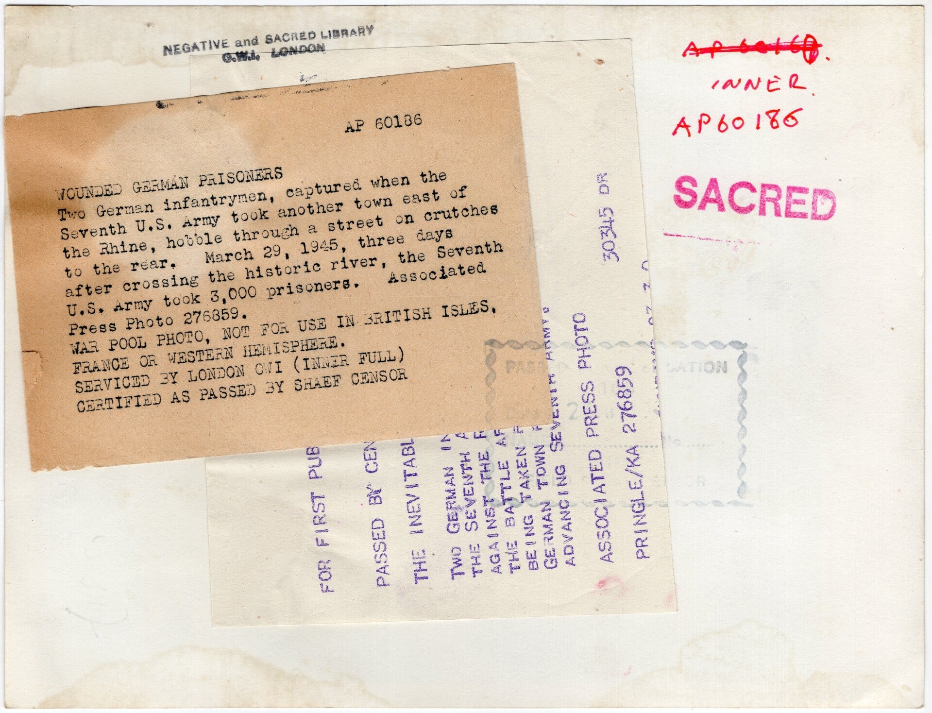 Originele Wo2 Amerikaanse Persfoto - Jonge gewonde Duitse krijgsgevangenen ten oosten van de Rijn (1945)
