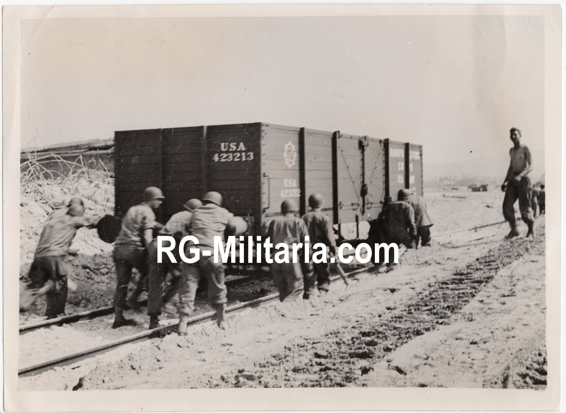 Original WW2 US Press Photo - US soldiers loading things up from the Cherbourg harbor after D-Day, Operation Overlord, Normandy, France (1944)