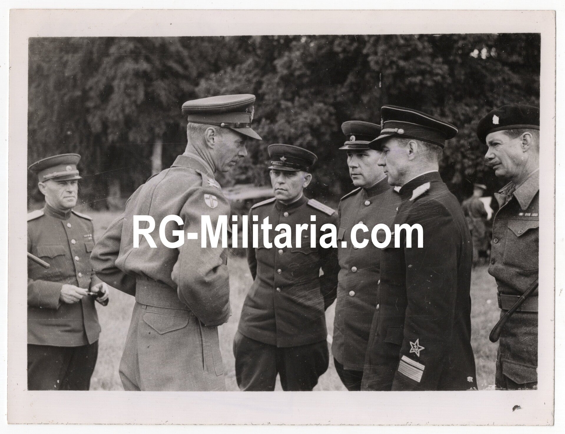 Originele Wo2 Britse Persfoto - Sovjet militaire delegatie bezoekt het front in Normandië (1944)