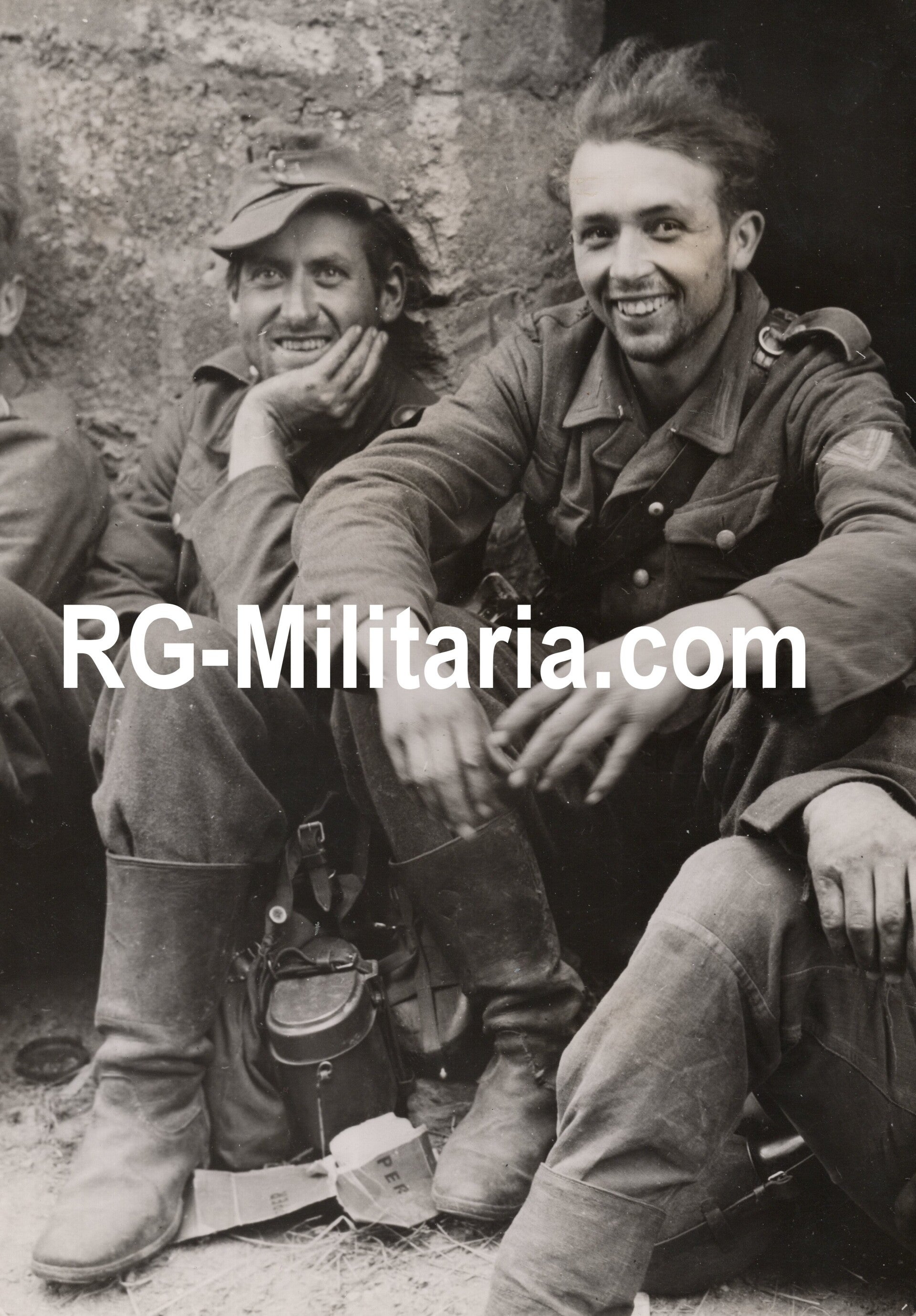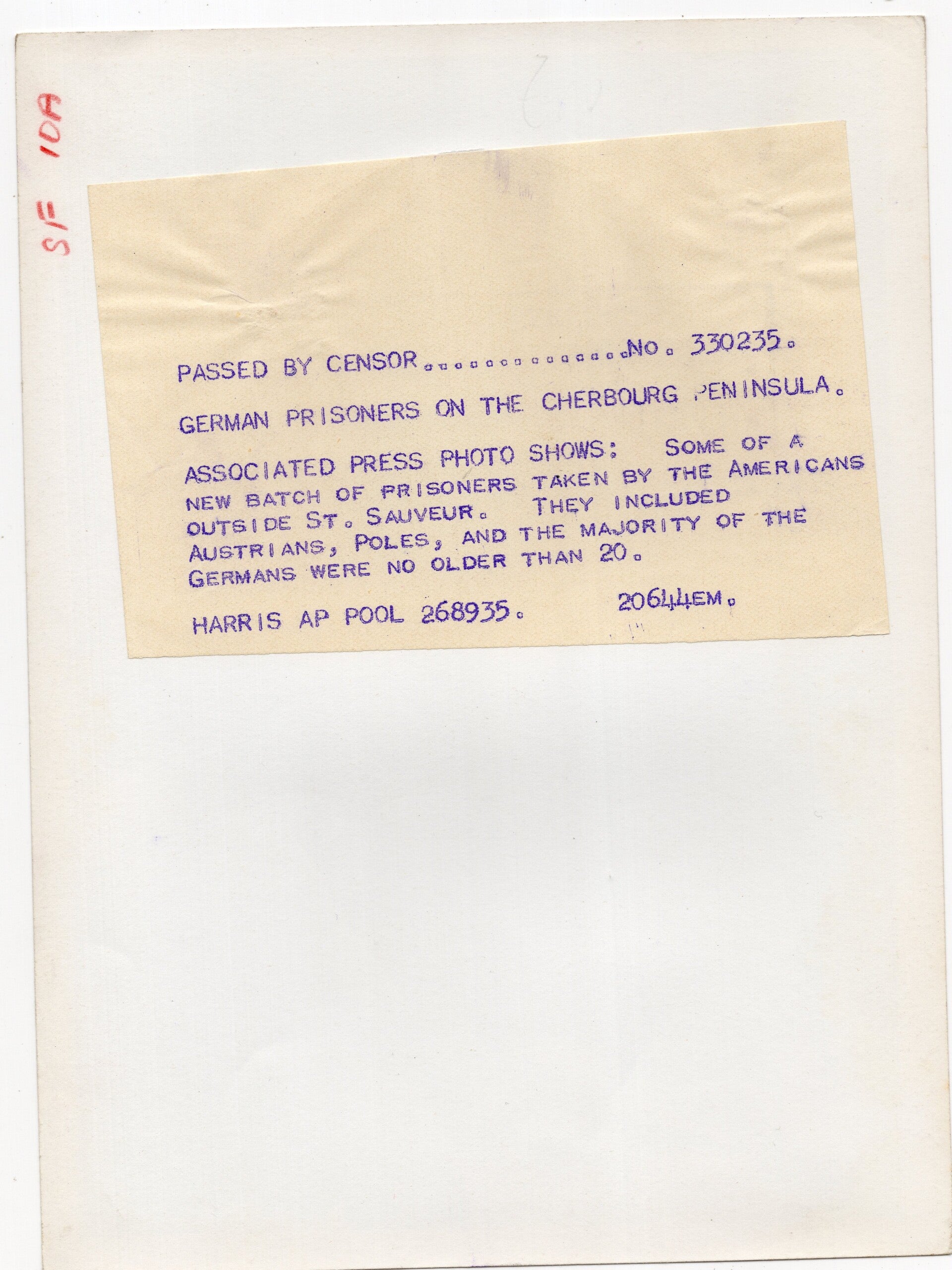 Originele Wo2 Britse Persfoto - Duitse krijgsgevangenen nabij St. Sauveur, Cherbourg, Normandië, Operatie Overlord, Frankrijk (1944)