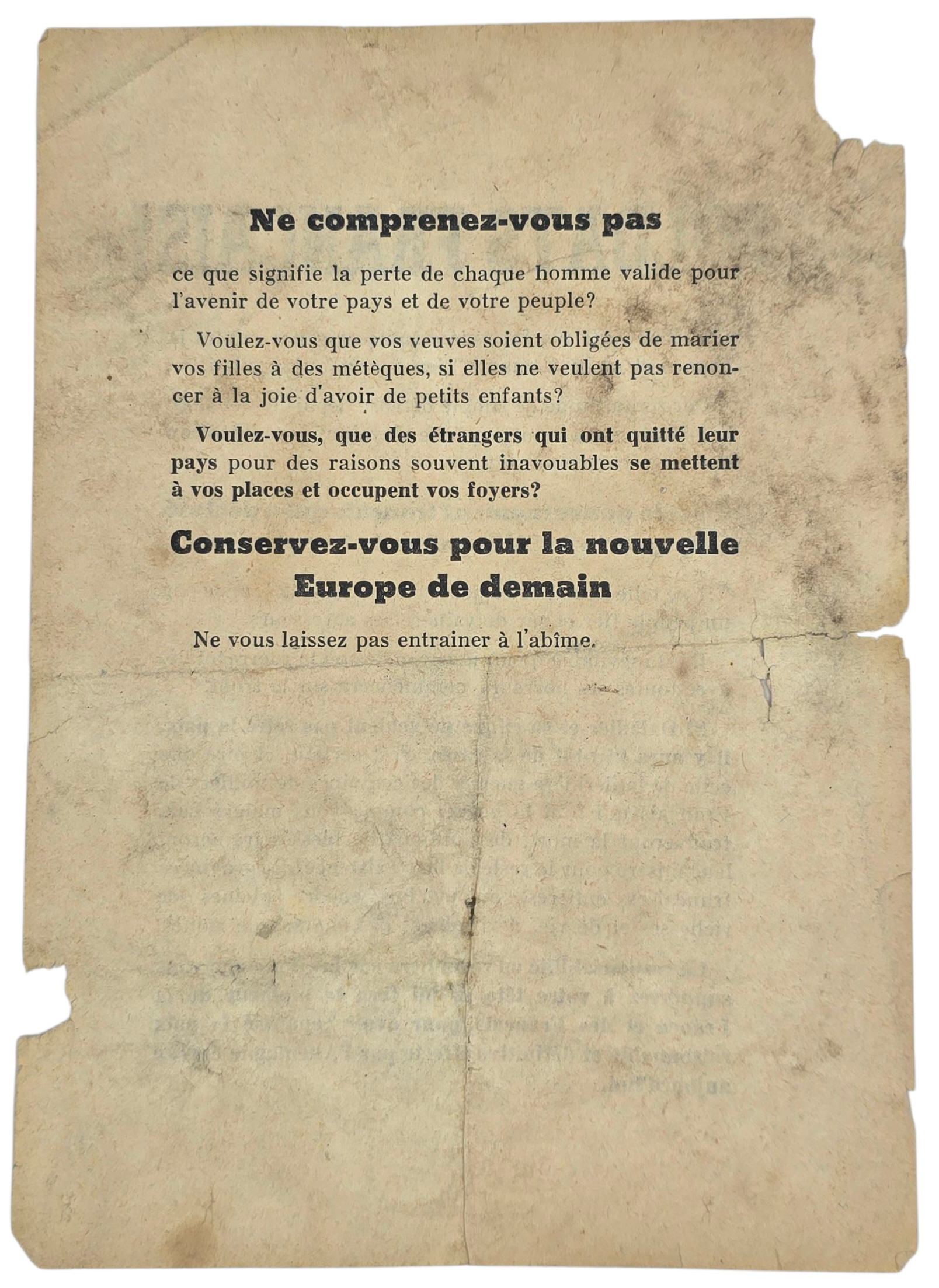 Origineel Wo2 Duits Pamflet - Schemeroorlog, Soldats Francais! L'Allemagne n'a formule? (1940)