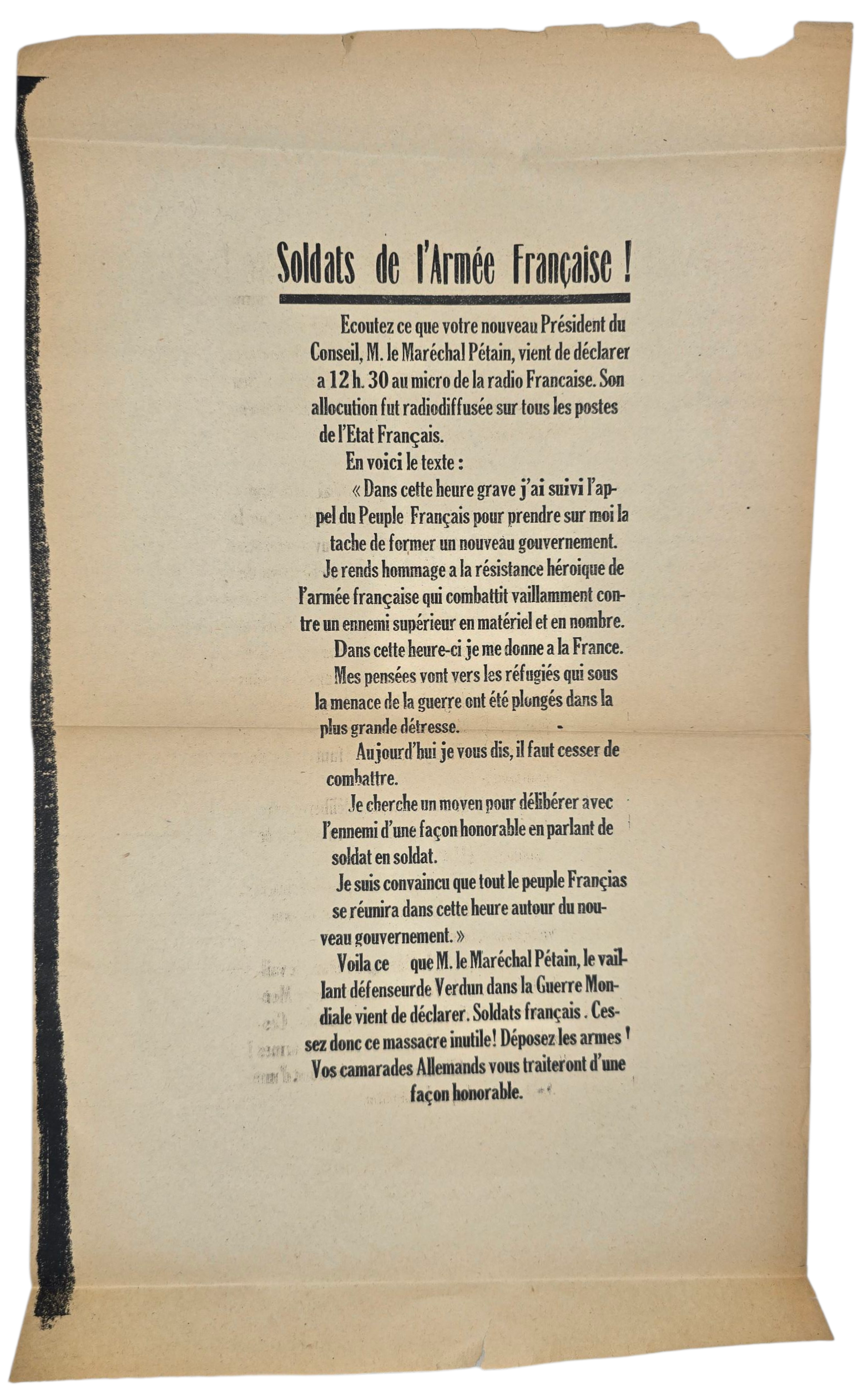 Duits pamflet voor Franse militairen over de Franse capitulatie.