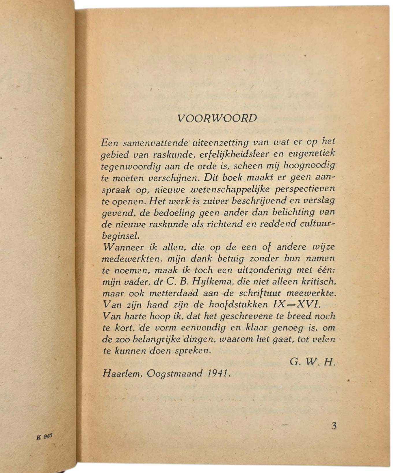 Original WW2 Dutch Collaboration NSB Book - Ras en toekomst, Dr. G. W. Hylkema, 3rd edition (1941)