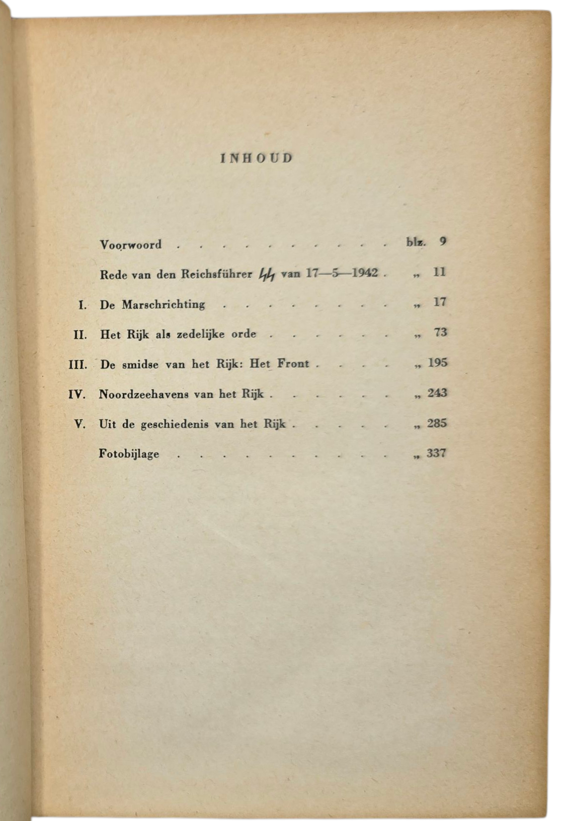 Origineel Wo2 Nederlands Waffen SS Boek - De Rijksgedachte, Groeiend Germaansch Bewustzijn in den Nederlanden van 1940-1943, J. C. Nachenius (1944)