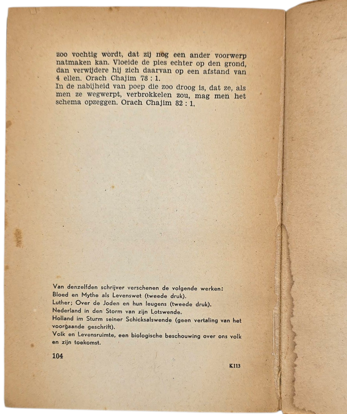 Original WW2 Dutch Antisemitic Collaboration NSB Brochure - Uit den Talmoed, Pieter Emiel Keuchenius, 2nd edition (1941)