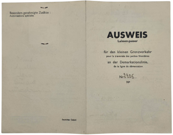 Origineel Wo2 Frans Document - Ausweis an der Demarkationslinie, St. Vallier, Frankrijk (1942)