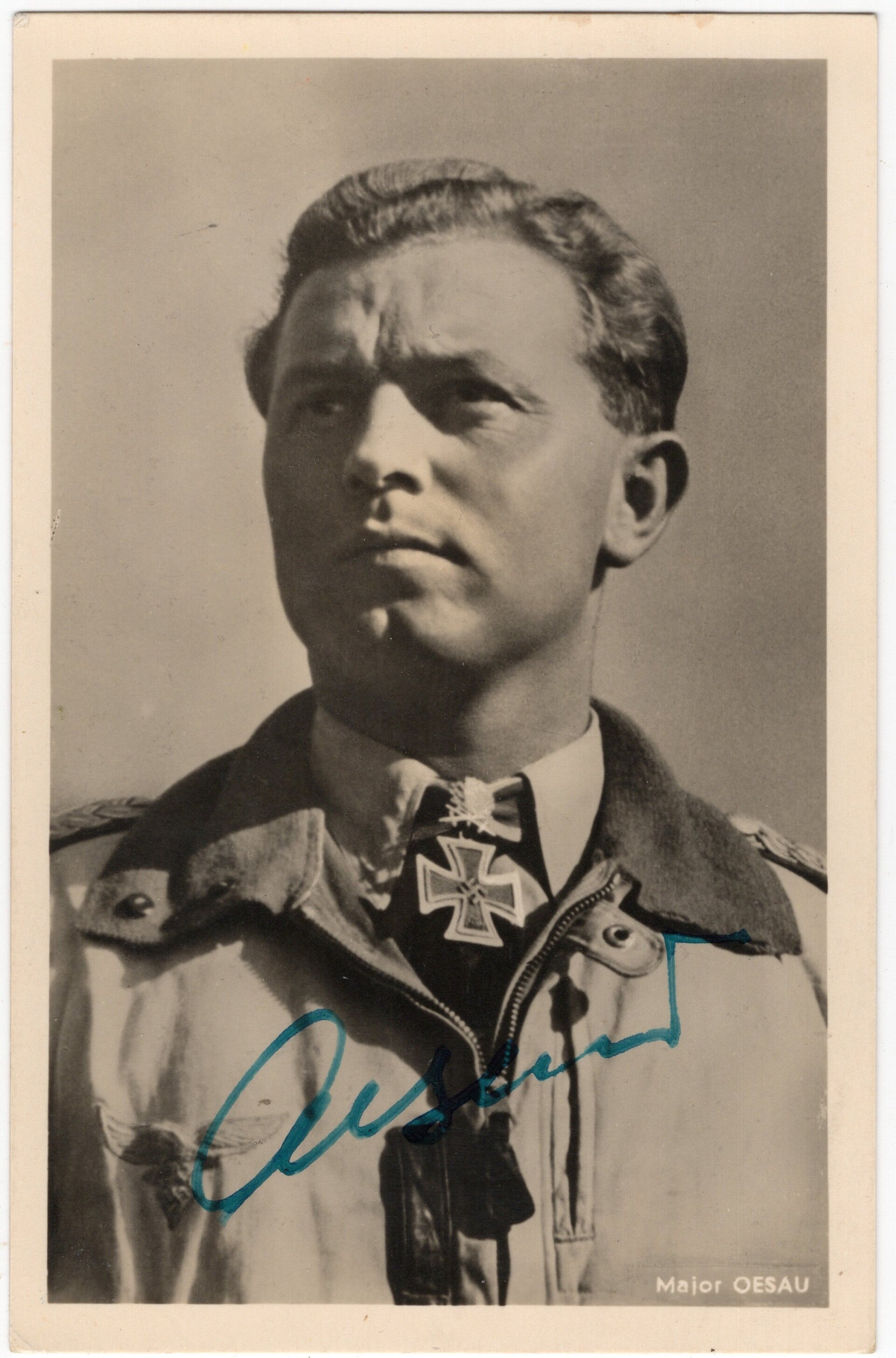 Original WW2 German Postcard - Signed Postcard Luftwaffe Knights Cross wearer Major Oesau