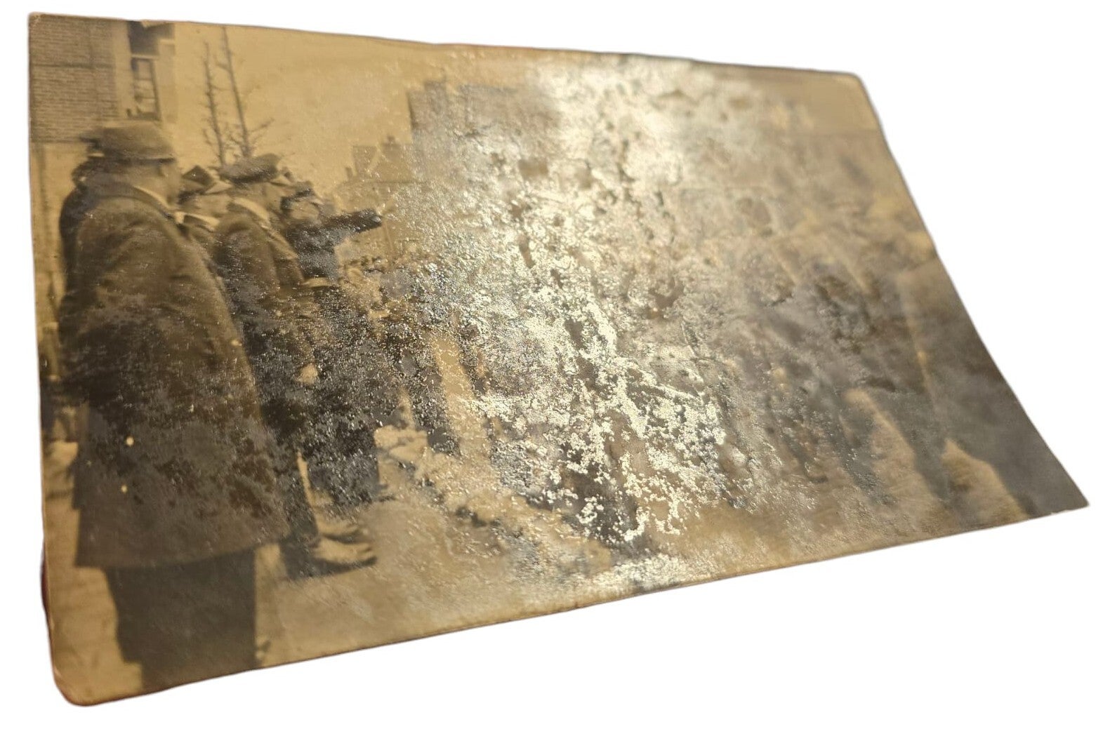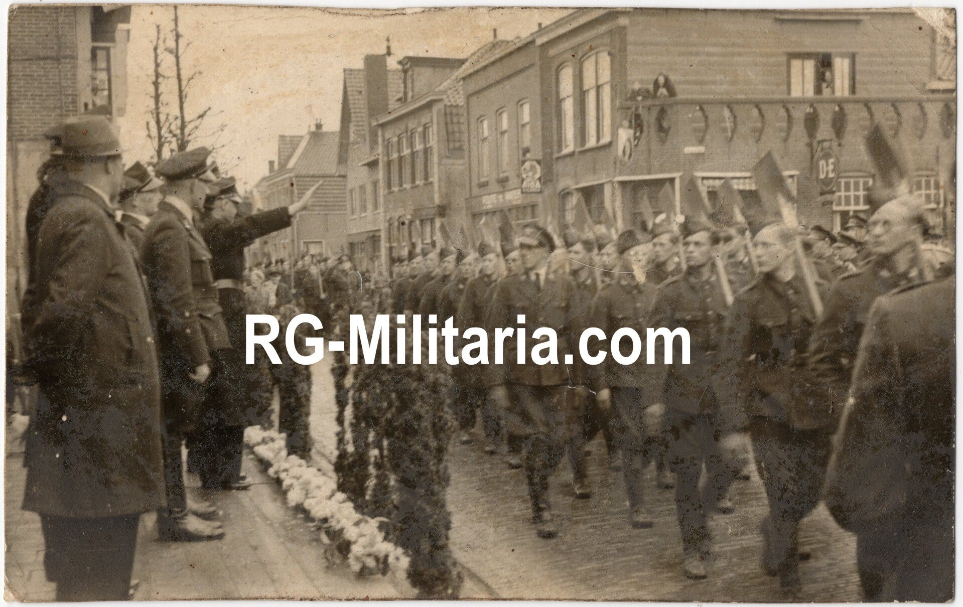 Original WW2 Dutch Collaboration NAD Photo - NSB leader Anton Mussert greeting NAD camp 333 ''De Wiekslag'' workers, Well, Limburg