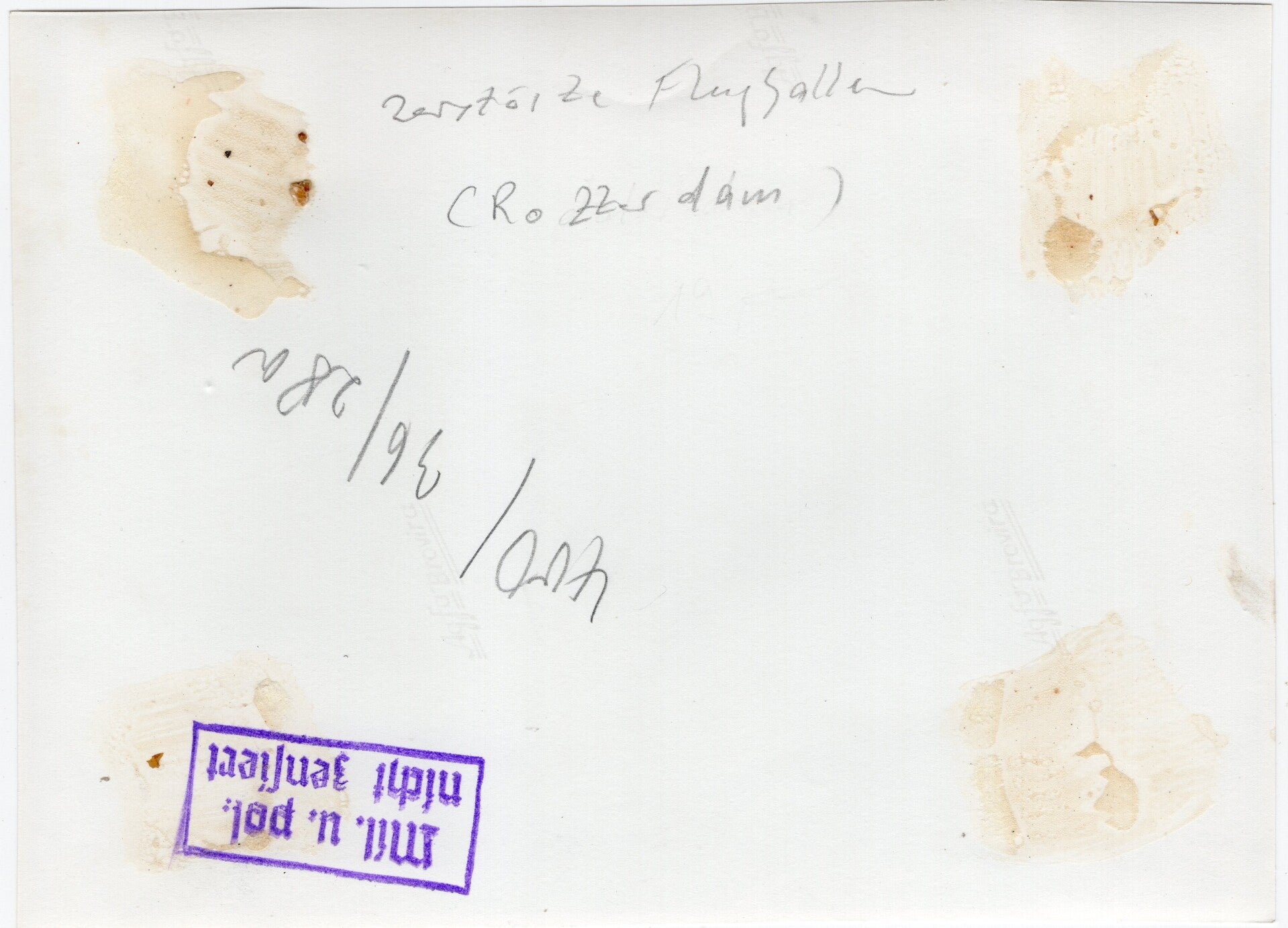 Originele Wo2 Duitse Persfoto - Vernietigde hangaar bij vliegveld Waalhaven, Rotterdam, inval Nederland (1940)