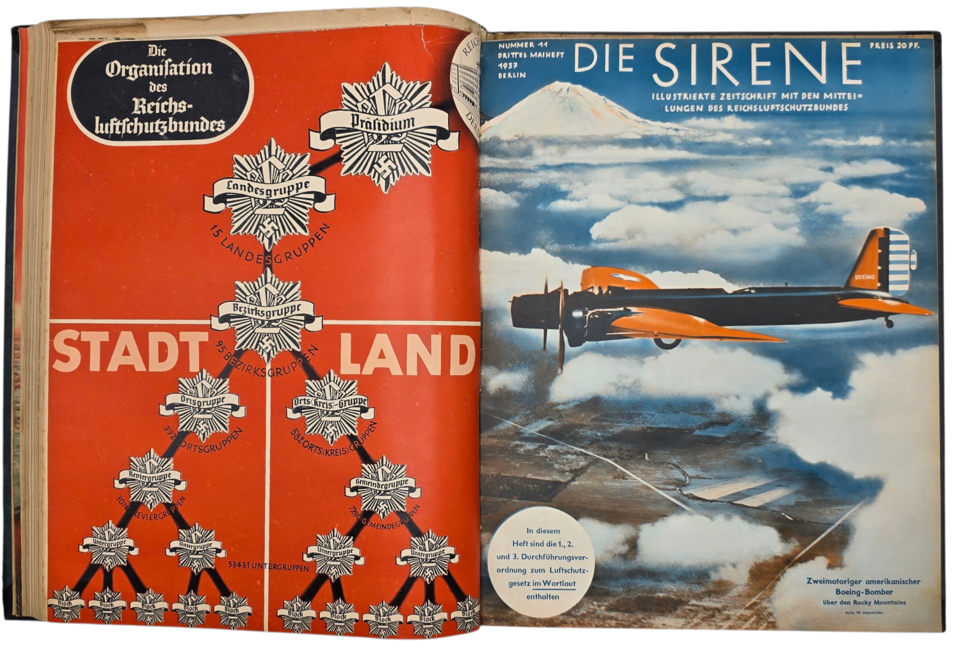 Original WW2 German RLB Magazine - Reichsluftschutzbund, Die Sirene bound year (1937)