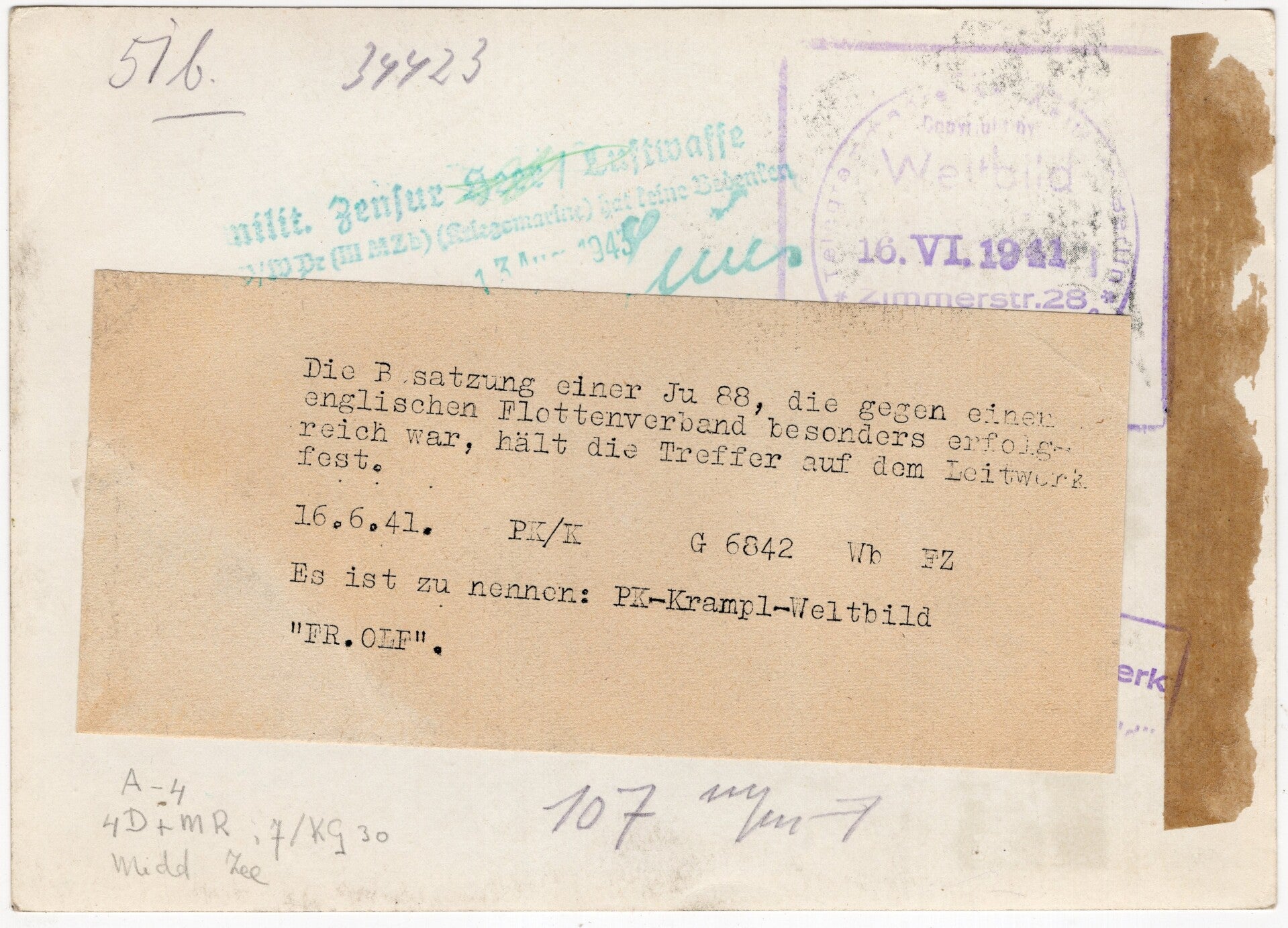 Originele Wo2 Duitse Persfoto - Luftwaffe Junkers JU 88 ship Kill / Victory markings (1941)