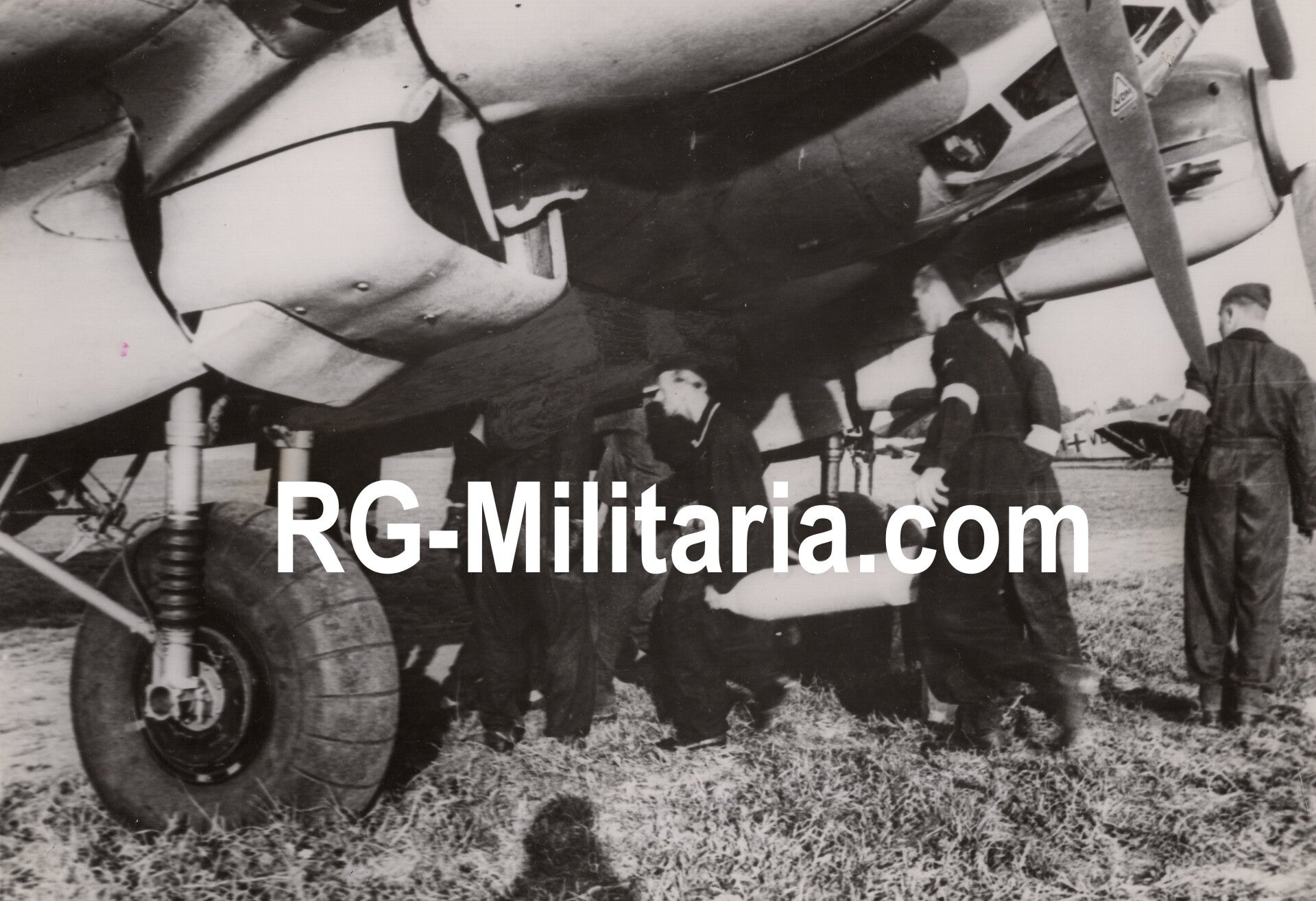 Original WW2 German Press Photo - Luftwaffe airplane is loaded with munitions (1939)