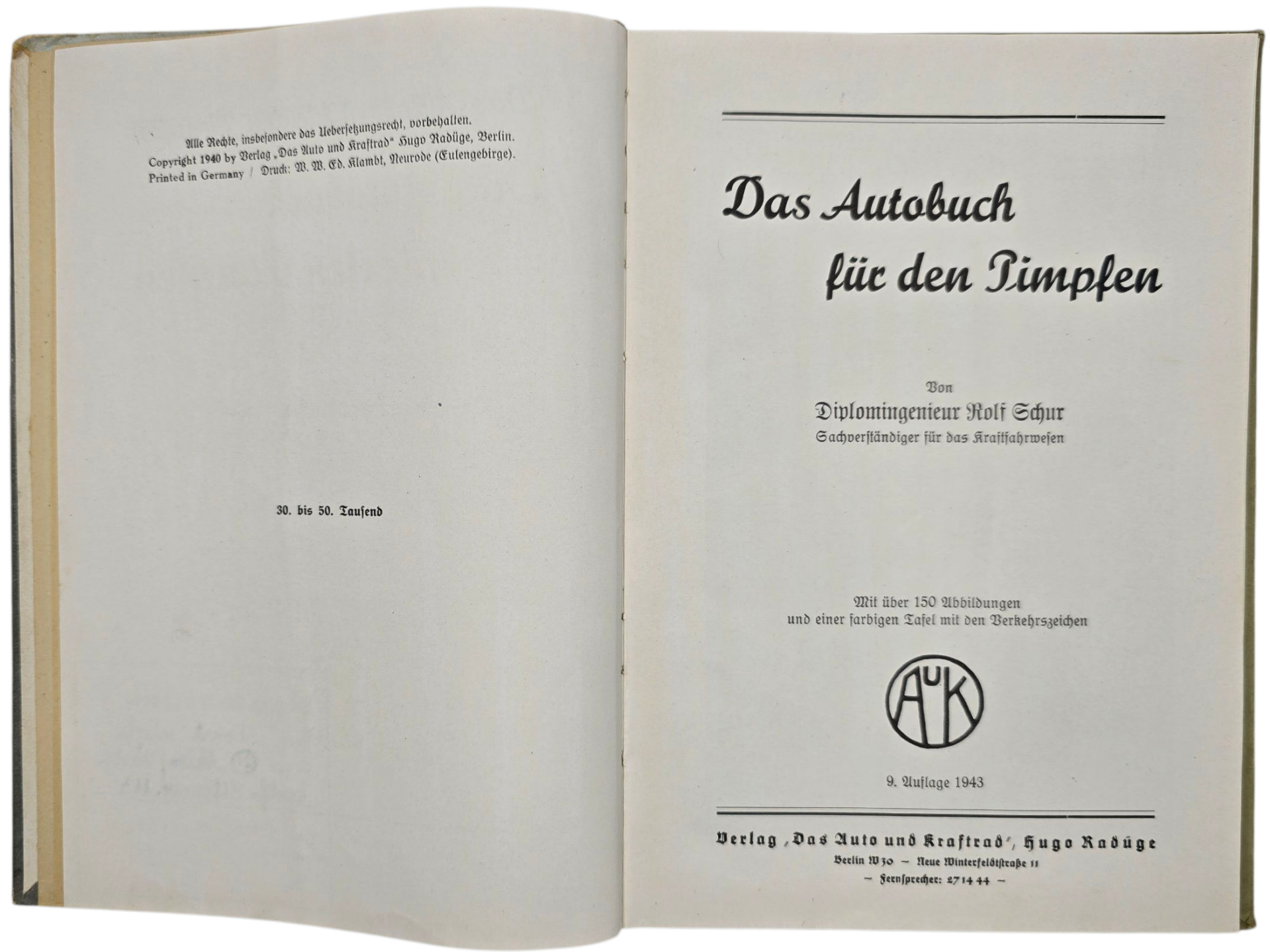 Origineel Wo2 Duits Boek - Das Autobuch für den Pimfen, Rolf Schur (1943)