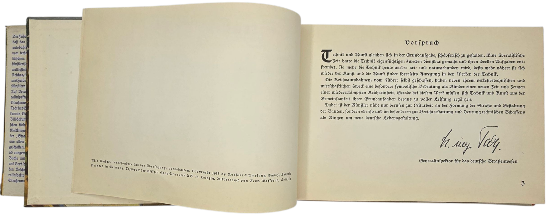 Interessant boek over de snelwegen die door Adolf Hitler mogelijk werden gemaakt. Het boek is geschreven door Ernst Vollbehr. Het boek staat vol met 60 kleurentekeningen over de voortgang van de bouw. De stofomslag is gerepareerd met zuurvrije tape. Aan het einde van het boek lijkt een bindversteviging op de pagina geplakt te zijn; dit lijkt een fout te zijn van de binding van het boek in 1935.