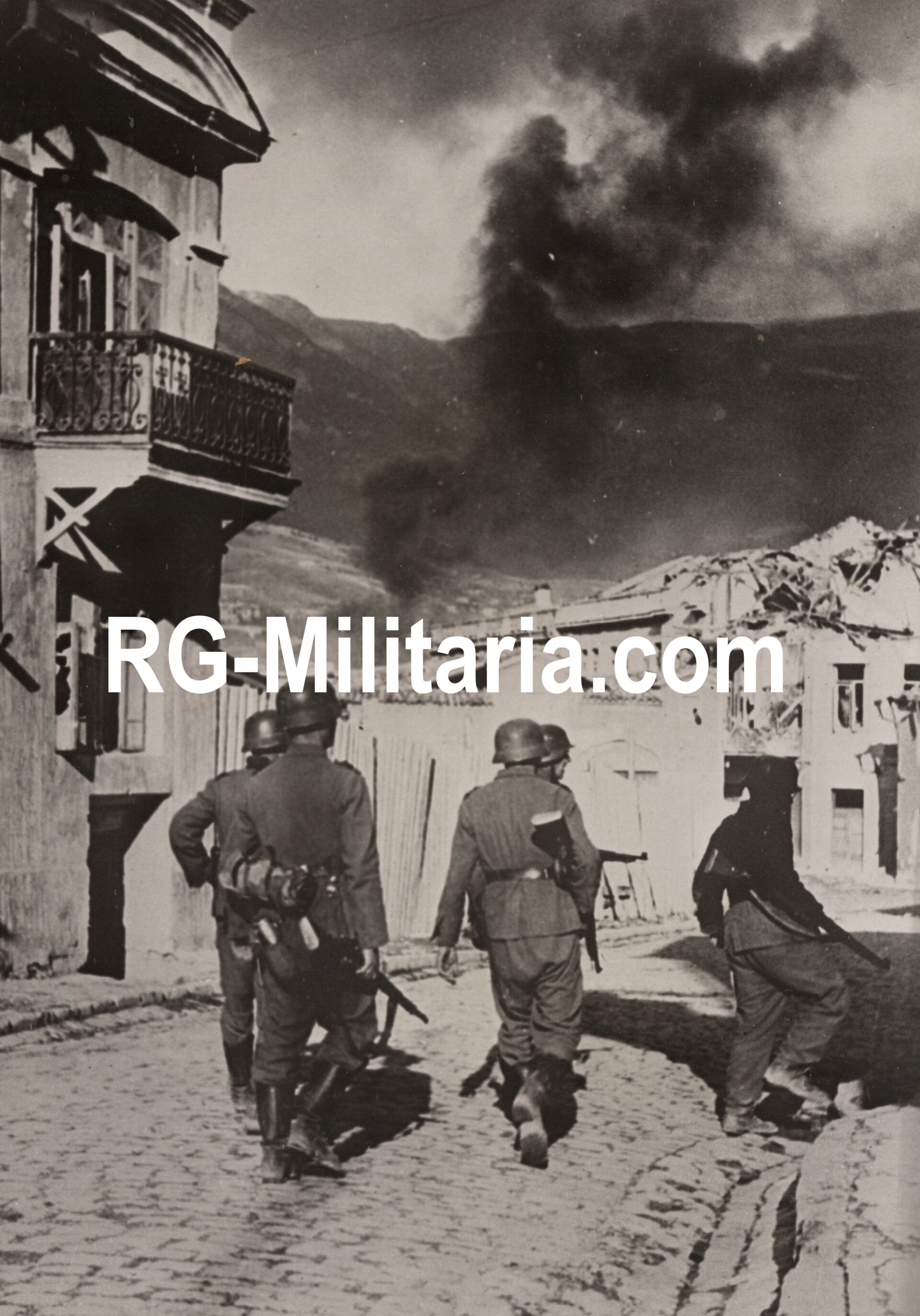 Original WW2 German Press Photo - German soldiers looking for hidden Soviet soldiers in Jalta, Crimea, Eastern Front (1941)