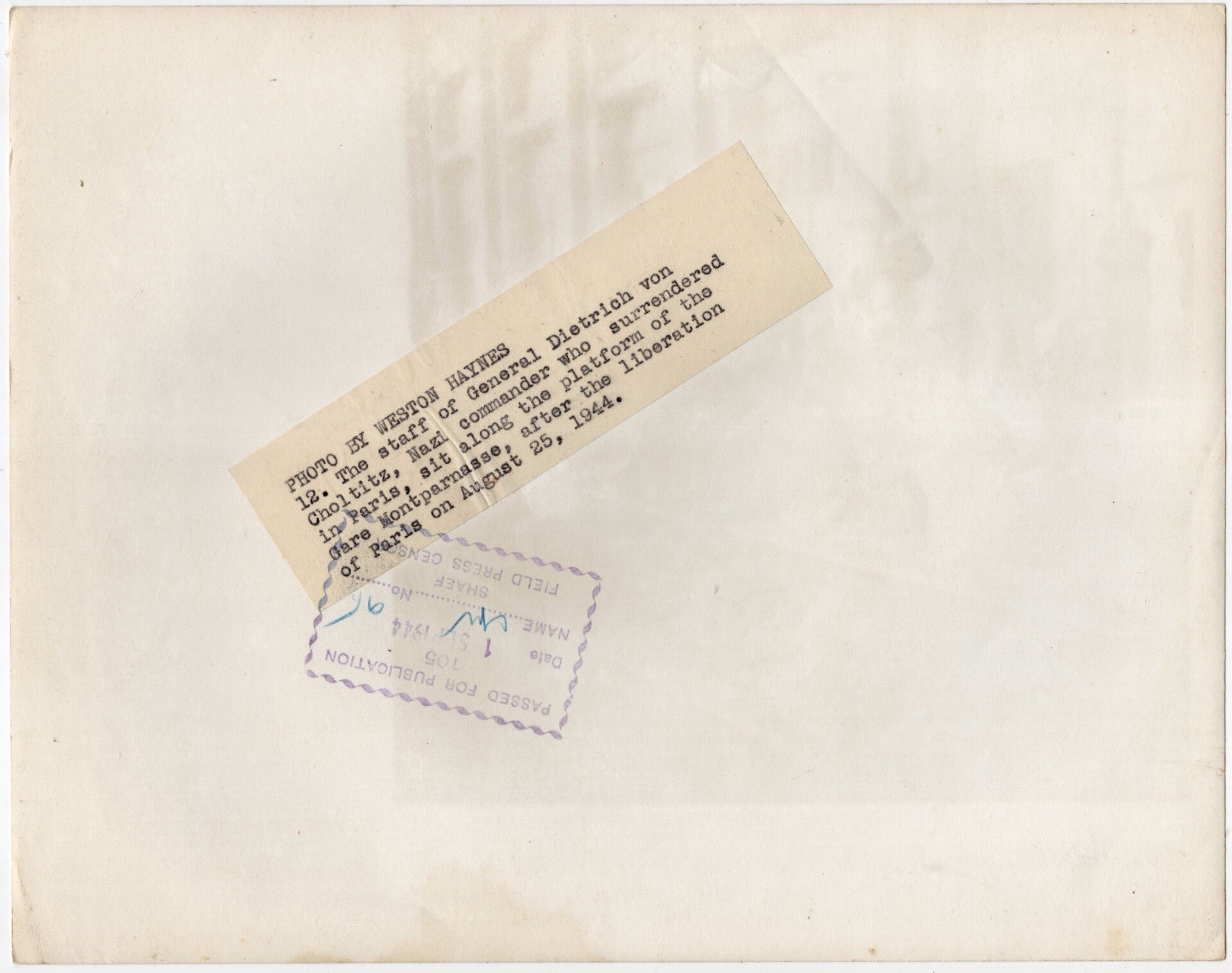 Original WW2 US Press Photo - Captured Staff of General Dietrich von Choltitz in Paris, France, Operation Overlord (1944)