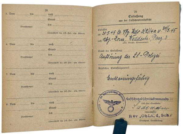 Original WW2 German Document - LuftschutzDienstbuch female from Hamburg (1945)