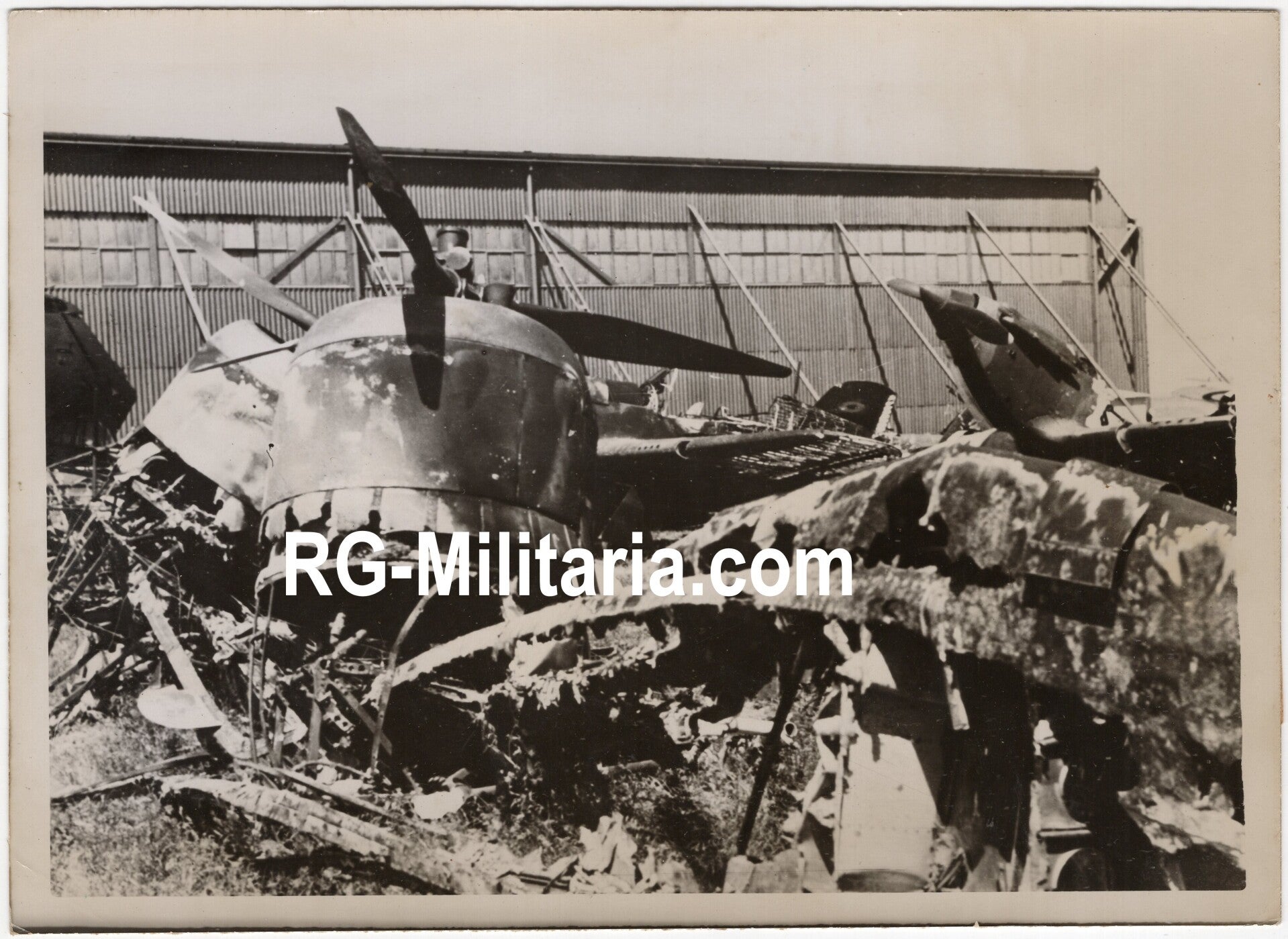 Original WW2 German Press Photo - Destroyed French and British airplanes at the airport in Amiens, France (1940)