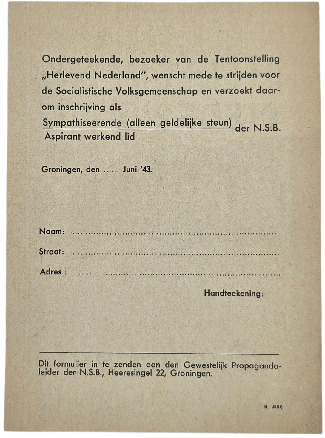 Original WW2 Dutch Collaboration NSB Document - Herlevend Nederland Groningen flyer (1943)