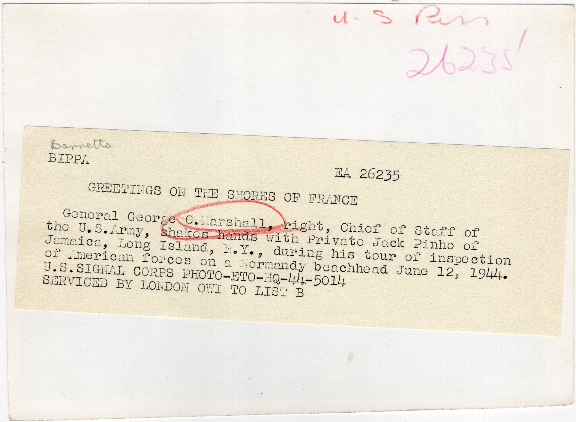 Original WW2 US Press Photo - General George Marshall inspecting US troops in France just after D-Day, Operation Overlord (1944)