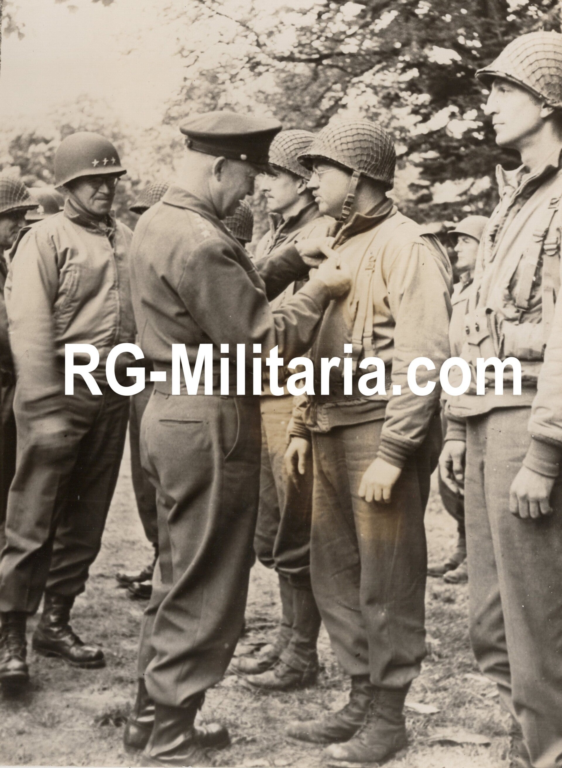 Original WW2 US Press Photo - General Dwight D. Eisenhower awards his men for their courage during D-Day, Operation Overlord (1944)