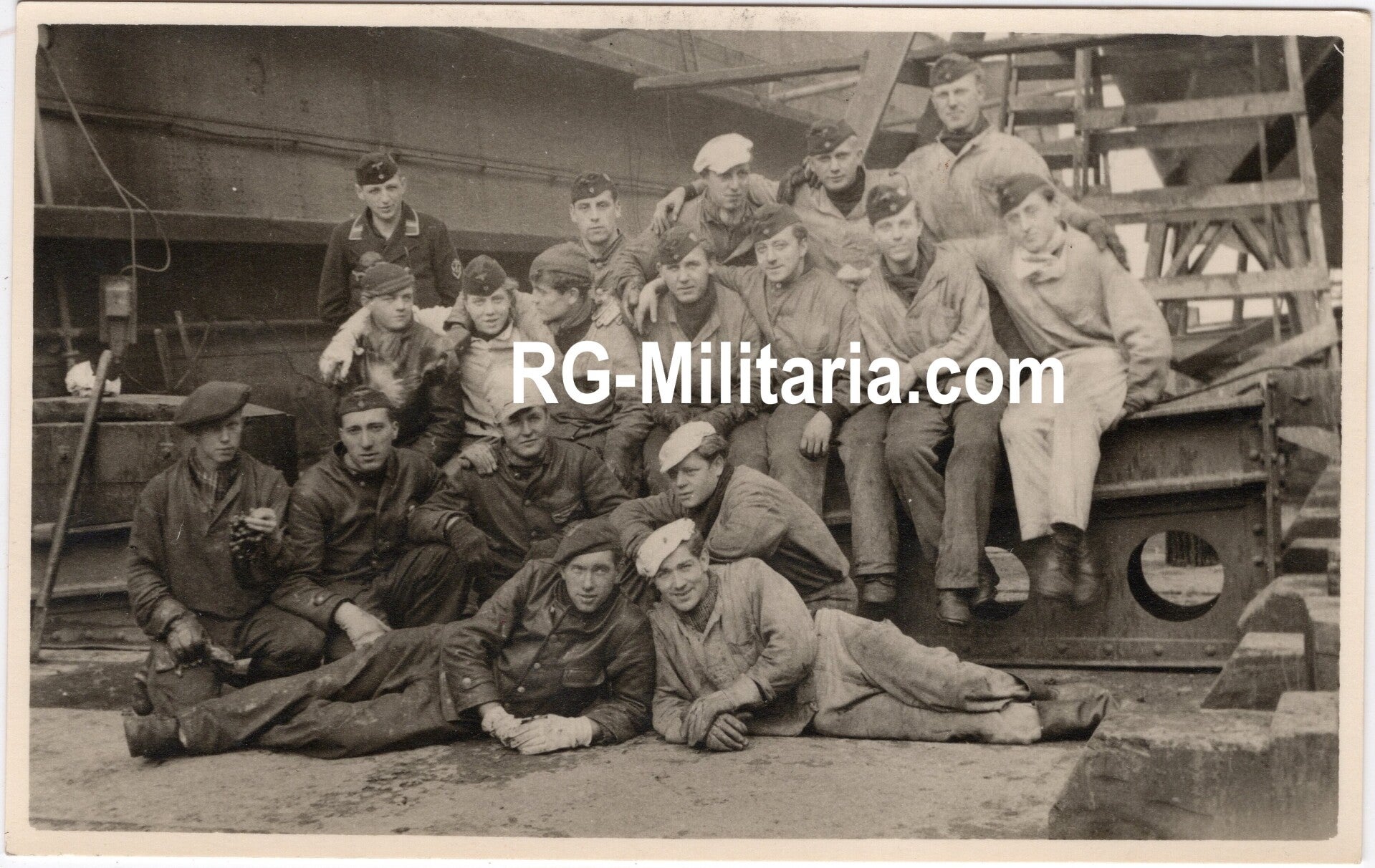 Originele Wo2 Duitse Foto - Kriegsmarine Vorpostenboot groepsfoto in de haven van Rotterdam, Nederland (1943)
