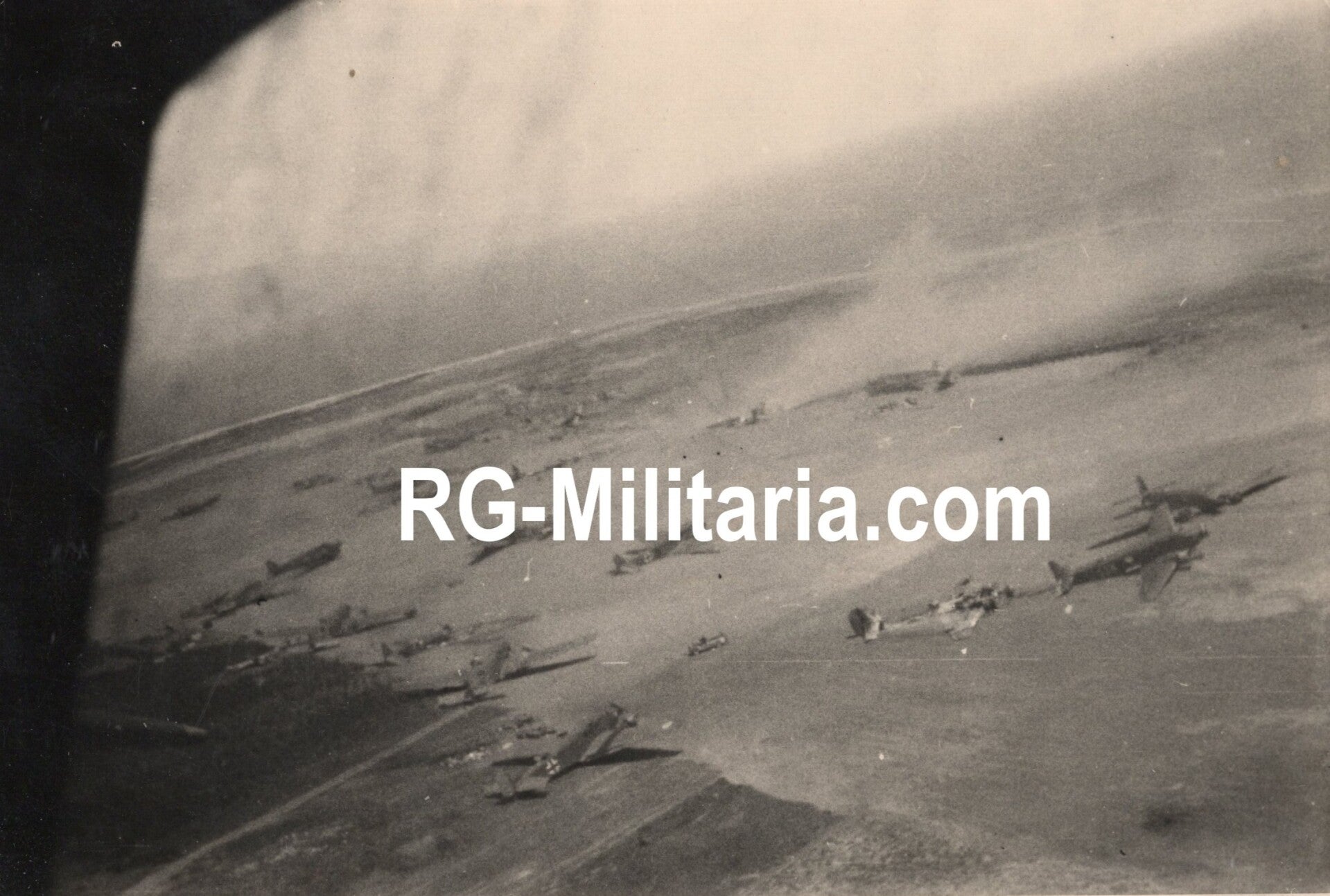Original WW2 German Photo - Arial picture of the Rotterdam airfield of Waalhaven during the Blitzkrieg on Holland in May, with landed and crashed Junkers airplanes (1940)