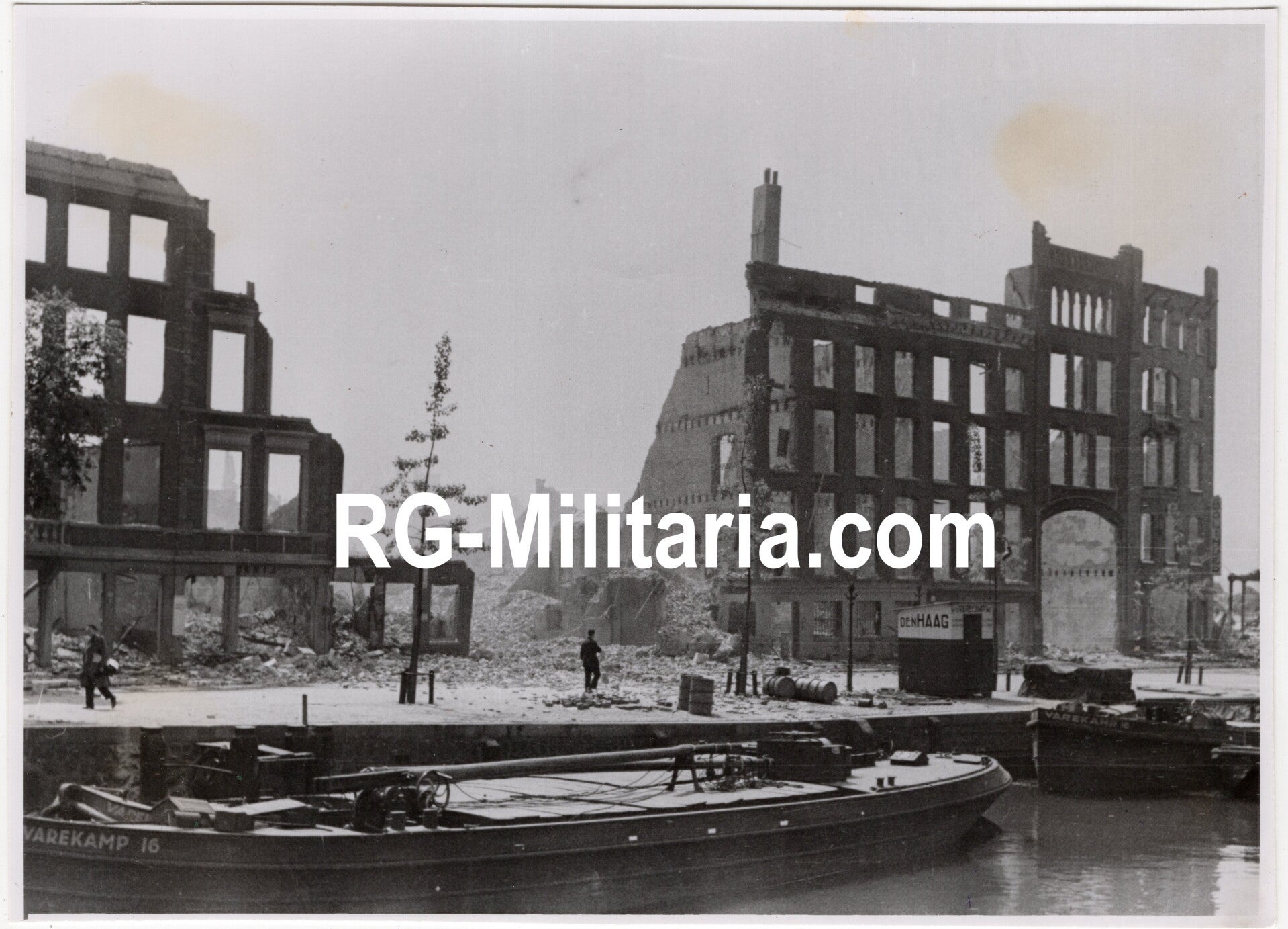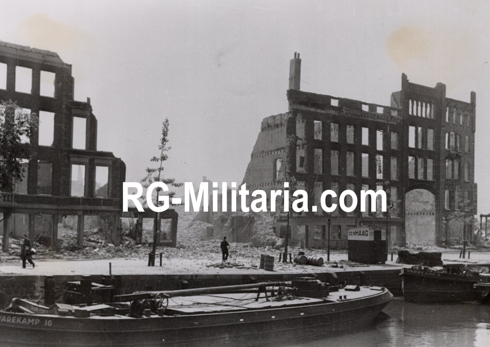 Originele Wo2 Duitse Foto - Kapotte gebouwen in een gebombardeerd Rotterdam, Mei (1940)