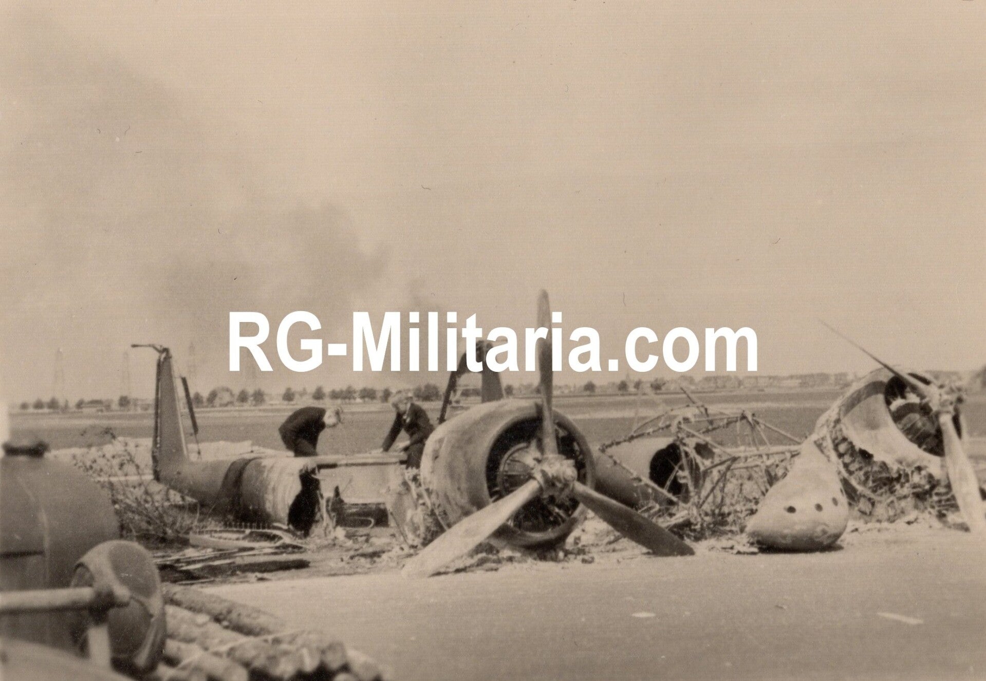 Original WW2 German Photo - Crashed and burned out Fokker Wasp G1 airplane at the Haagweg near Schiphol, Amsterdam (1940)