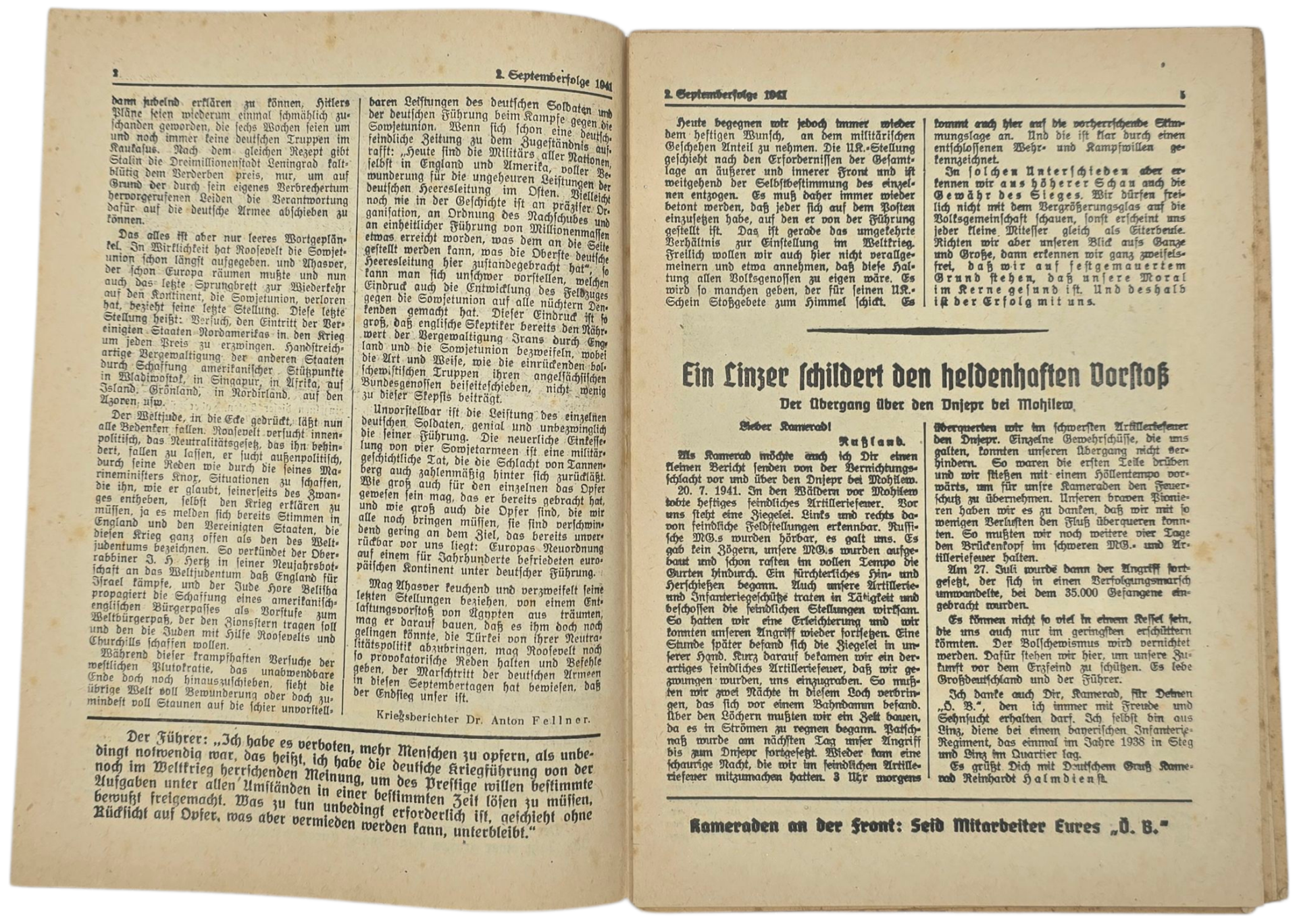 Originele Wo2 Duitse krant - Österreichischer Beobachter, 6de jaargang, 2e Septembernummer (1941)